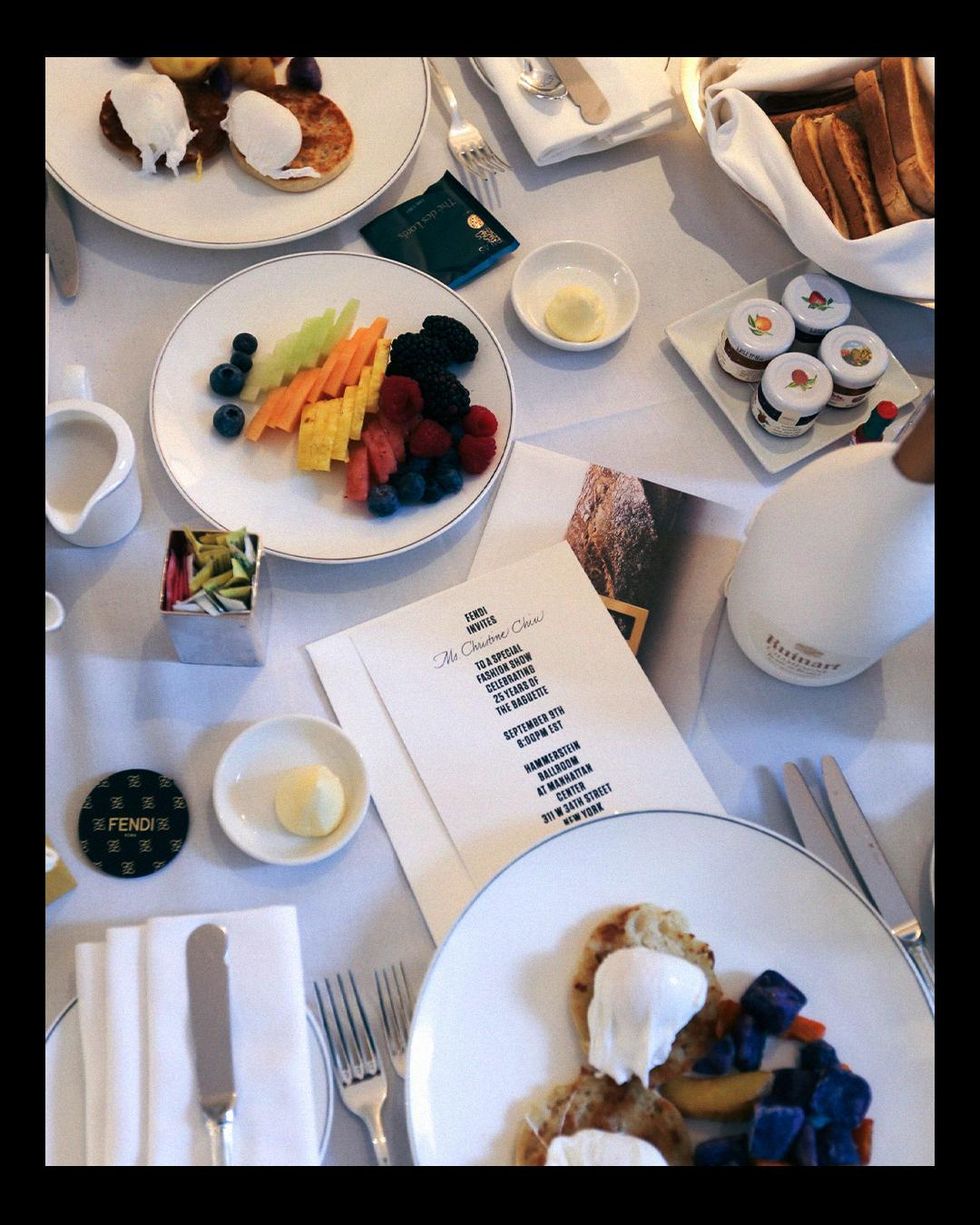 During Fashion Week, chicken and waffles are replaced with poached eggs and fruit.