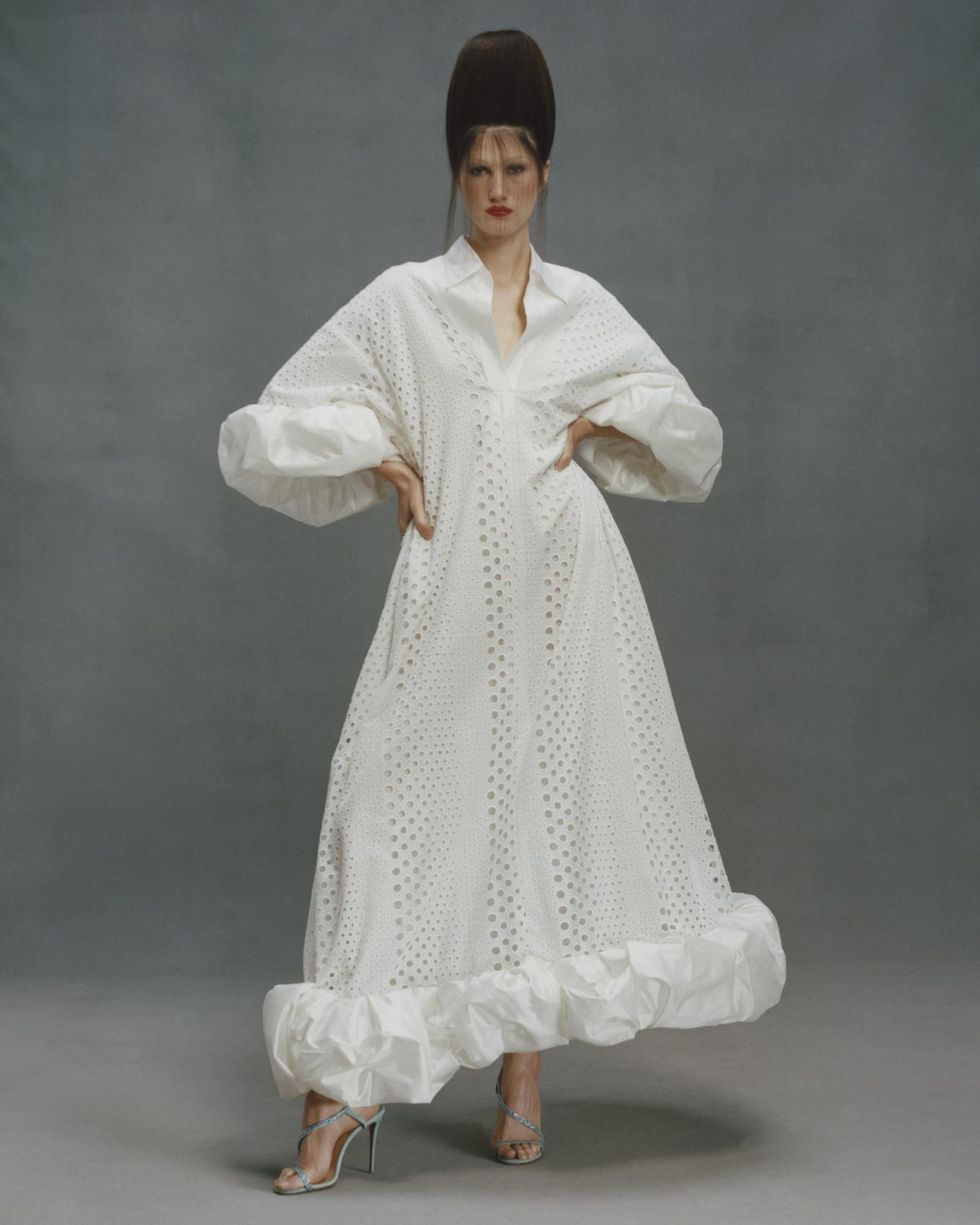The multitudes of CJR's clowns (more affectionally known as "squirrels") are evident in the full spectrum of wardrobe options: sumptuous off-duty knitwear, daytime tailoring, cocoon dresses and, of course, his statement eveningwear. Collection 11, in the gallery below, is available for pre-order now until January 20 at ChristopherJohnRogers.com.