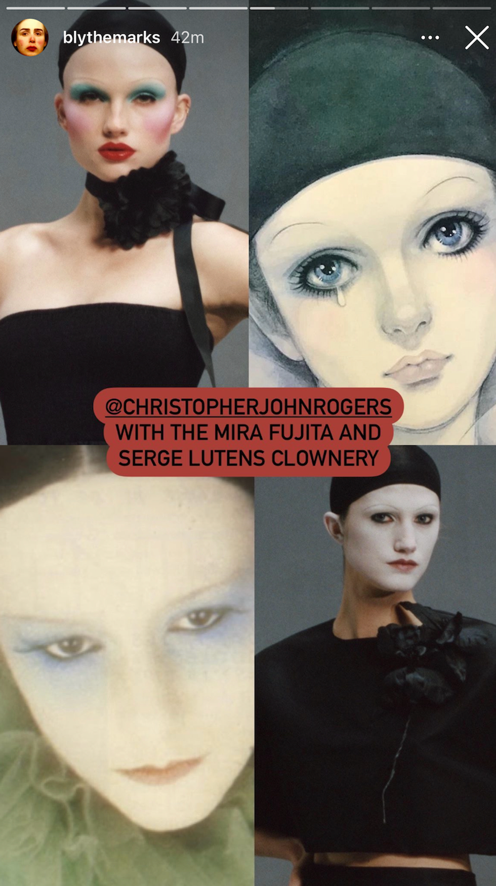 Even some of the models' makeup seemed to reference the '80s sad clown posters from illustrator Mira Fujita, as vintage dealer Blythe Marks astutely noted.
