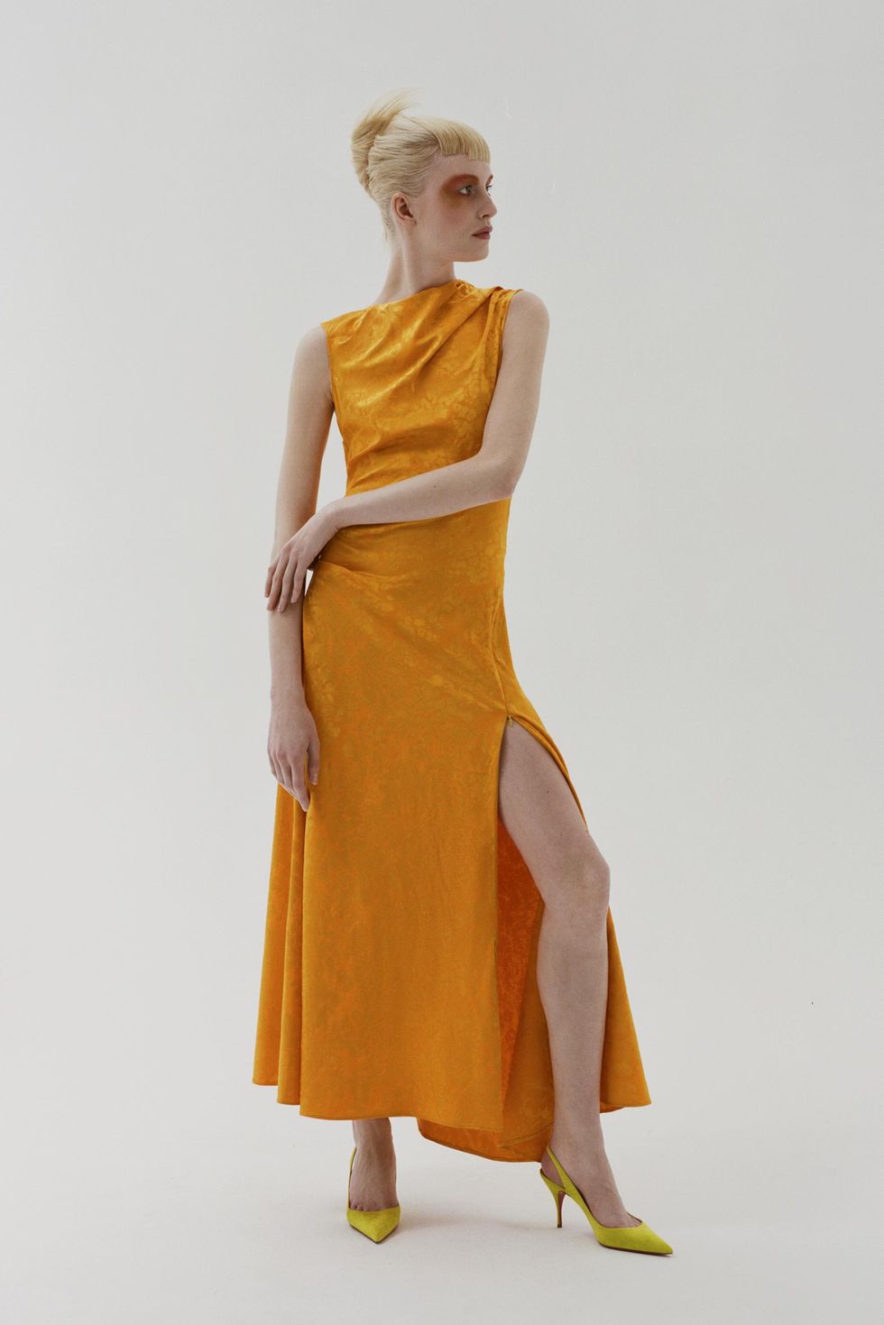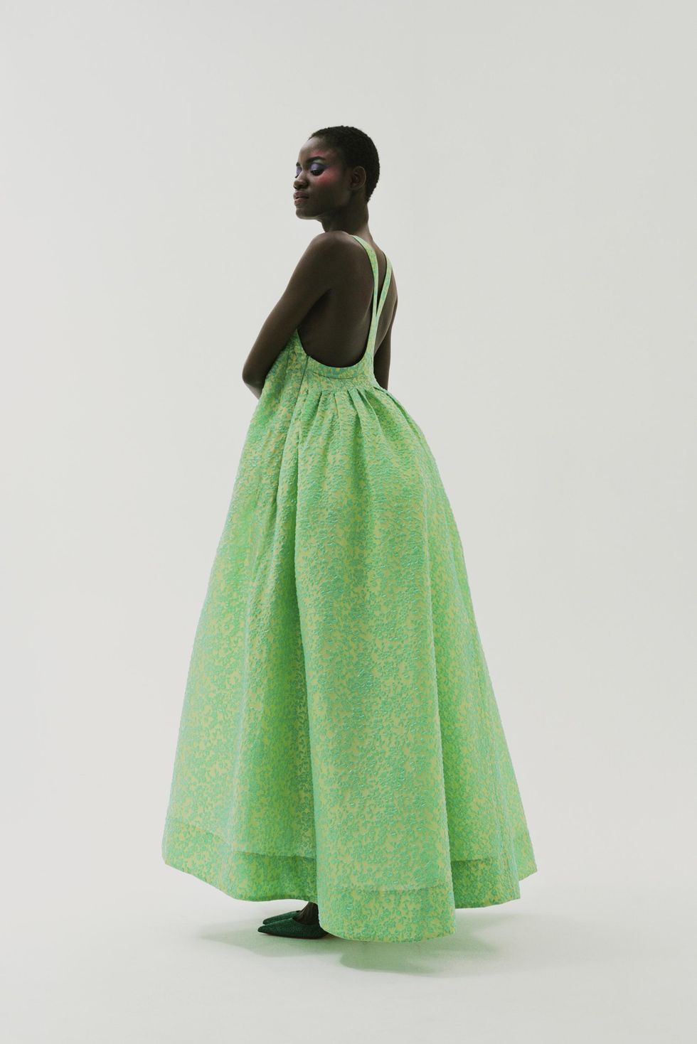 A Christopher John Rogers look is identifiable from a mile away. Many of the distinct features that make up the recent winner of the CFDA American Womenswear Designer of the Year have continued to make an appearance in his Collection 009.