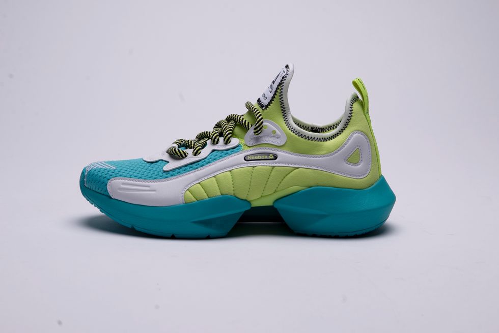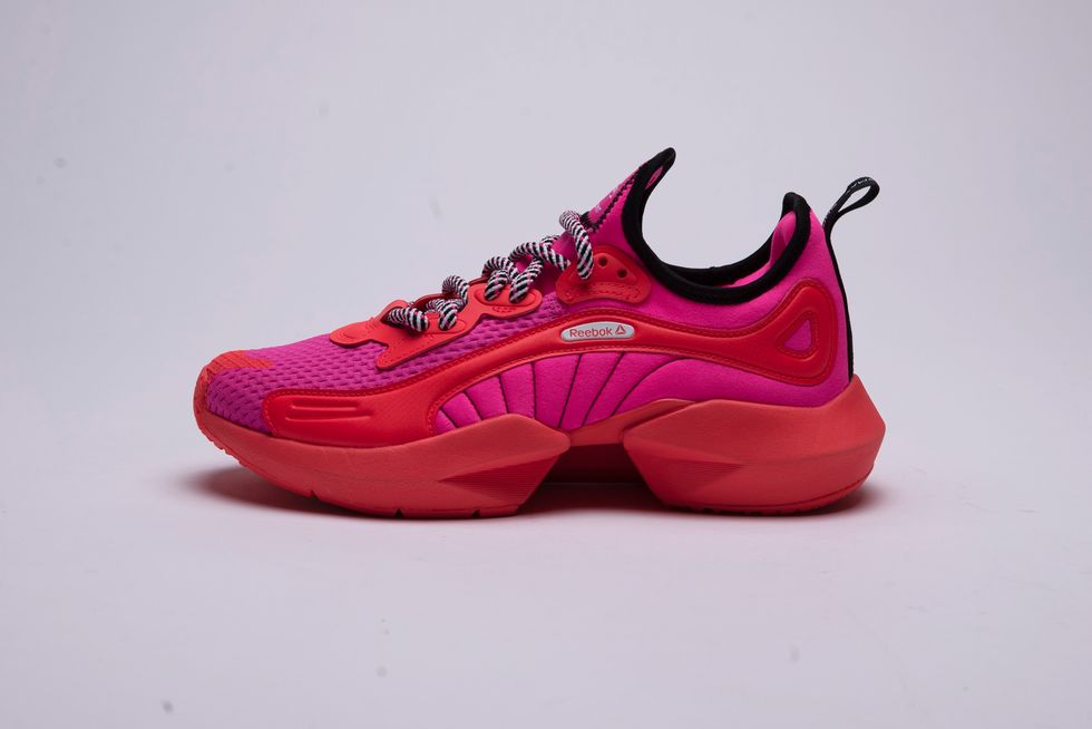 Showing Reebok's Sole Fury sneaker in an assortment of punchy new colors, the collaboration between brands is reintroducing the "Split Cushioning Technology" pioneered by Reebok in the '90s. After a brief revival on the Matthew Adams Dolan runway last Fall, the shoe's innovative cushioning and fresh silhouette are newly imagined with Chromat's architectural design and bold attitude.