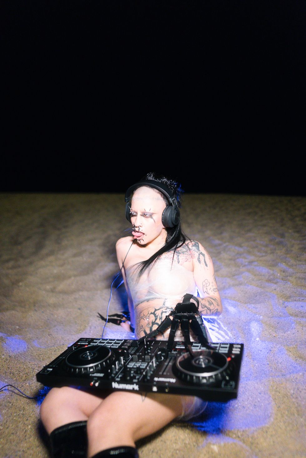 Now, the model and DJ is set to share their enigmatic sets online, taking what they once felt should be strictly an “experience you have to live” to the digital masses. “I think it's time for everyone to be able to enjoy my noise without me being present,” they say. “Also, I have some performances and visual projects that I can't wait to show.”