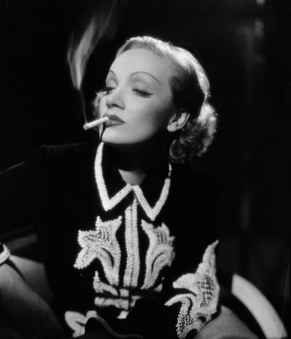 The most important element, however, is the cigarette pursed between her world-famous lips.