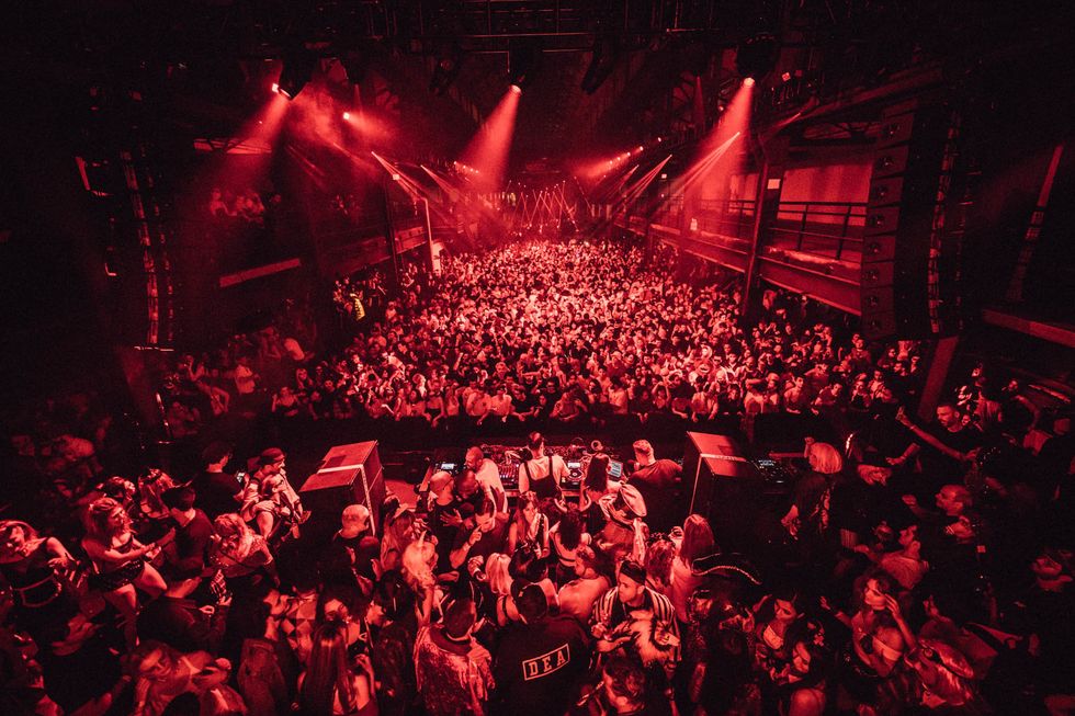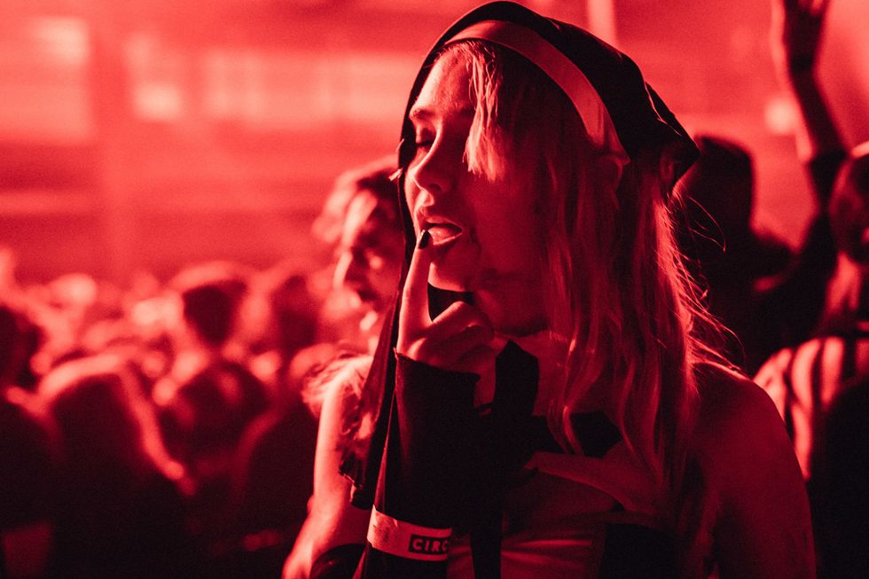 Tapping some of techno's most exciting underground talents, Circoloco recruited house impresarios The Martinez Brothers, Korean rising star Peggy Gou, and former Air Guitar World Champions-turned-psychedelic duo Blond:Ish, and Off-White boss and creative director of Louis Vuitton Men Virgil Abloh to round out the heavy-hitting lineup. With a distinct lack of flashy LED boards and fancy stage decoration, the focus was solely thrown on the costumed crowd bathed in a monochromatic red light.