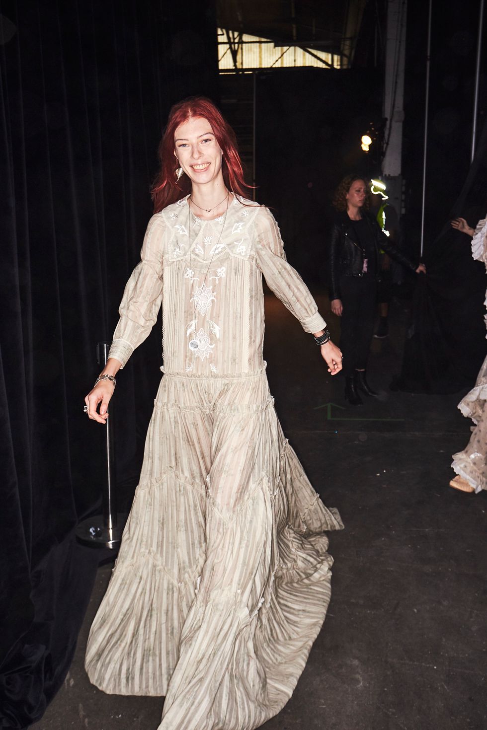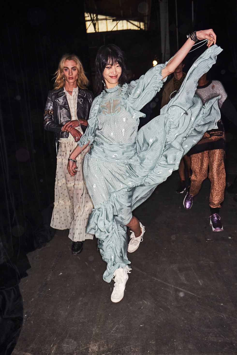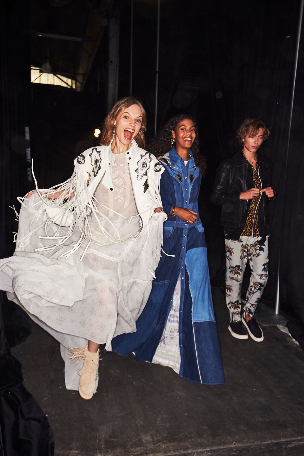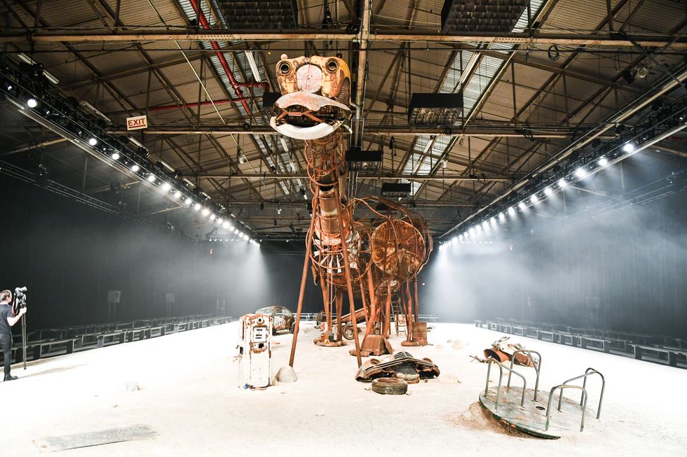Under Stuart Vevers' reign, Coach 1941 has become synonymous with a slightly sinister, ever-youthful fusion of the American Southwest with varsity prep and pastoral clothes. For his spring 2019 collection, the designer dropped that vision into a post-apocalyptic desert landscape, sending prairie dresses, patchwork denim jumpers, bishop sleeve blouses, and bomber jackets through a set covered in glittering sand.