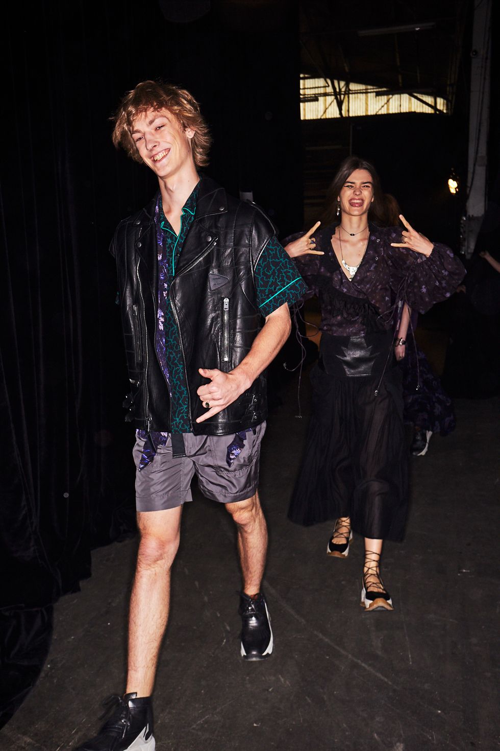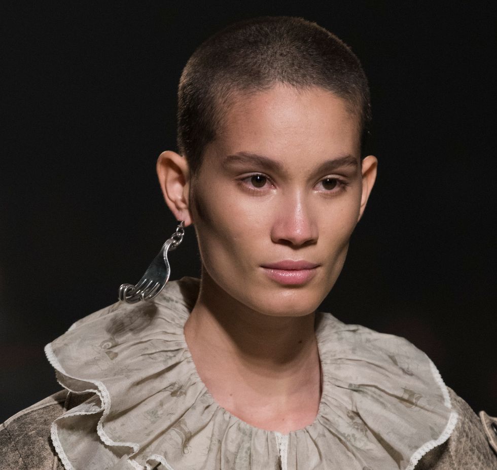 The collection's overarching reference of discarded and found objects manifests in the accessories with earrings that resemble forks cut at the neck. Curled prongs add a surreal twist to the curious baubles.