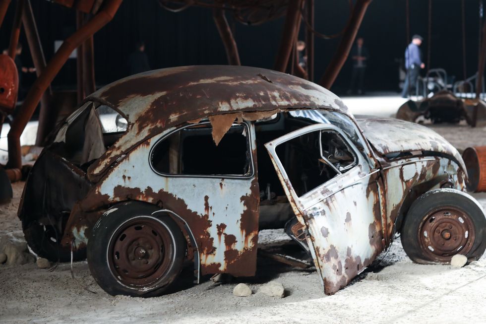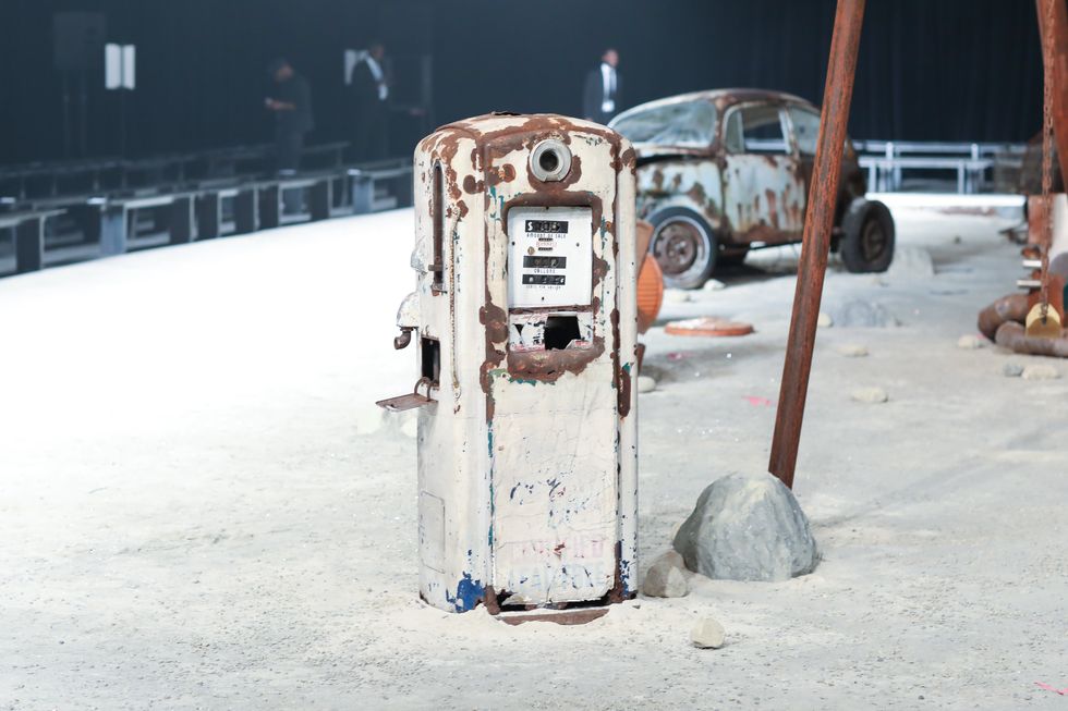 At the center of the Stefan Beckman-designed set stood a "dinosaur" named Bronty. Made of antiques sourced from around The U.S. including plane turbines, swing set seats, and wooden carriage wheels, the structure stood 20 feet tall and 100 feet wide. Bronty, who took over 200 hours to make, was surrounded by tattered relics of decades past from a retro fridge and a rusting vintage car to an old merry-go-round.