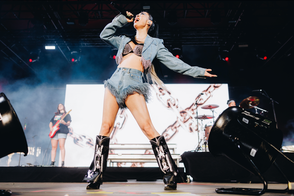 Kat Typaldos did double-duty styling this weekend, outfitting Caroline Polachek in a custom look from Milwaukee native Elena Velez and a simple tank and trousers ensemble from Judy Zhang for Maggie Rogers. And stylist Marta del Rio worked with costume designer Conrad Muscarella and his new label State Fair for Billie Eilish's performance.