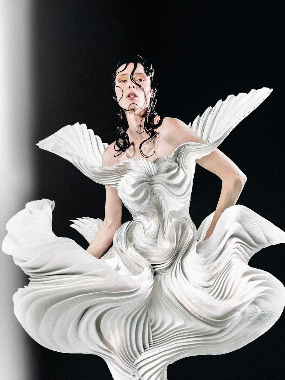 Threeasfour, the New York fashion house known for combining technical innovation and couture techniques and was involved with this project, says that they have been fascinated by the challenge in bringing a digital garment into a physical photoshoot.