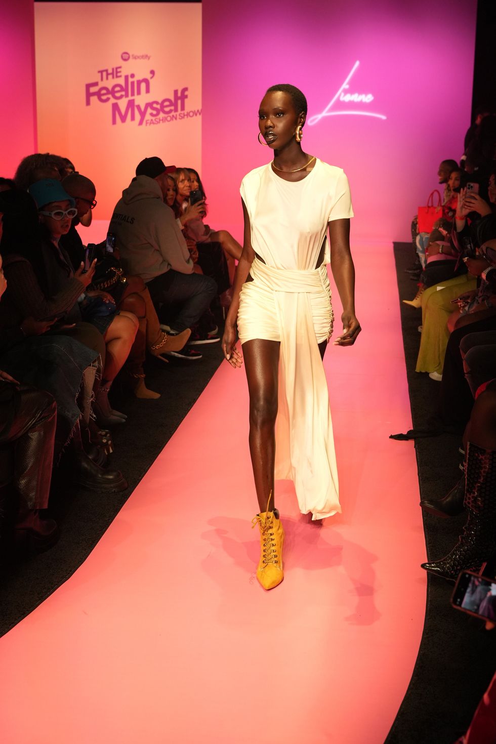 To celebrate the contributions of women in hip-hop to the fashion industry and to present Lil’ Kim with the Women in Hip-Hop Fashion Icon award, Spotify hosted its first-ever runway featuring designs from LIONNE by Latoia Fitzgerald. The emerging Philadelphia-raised designer is behind celebrity styles worn by the likes of Jhené Aiko and Karrueche Tran, blending class and sex appeal to pay homage to the history of fashion in hip-hop with a modern edge.