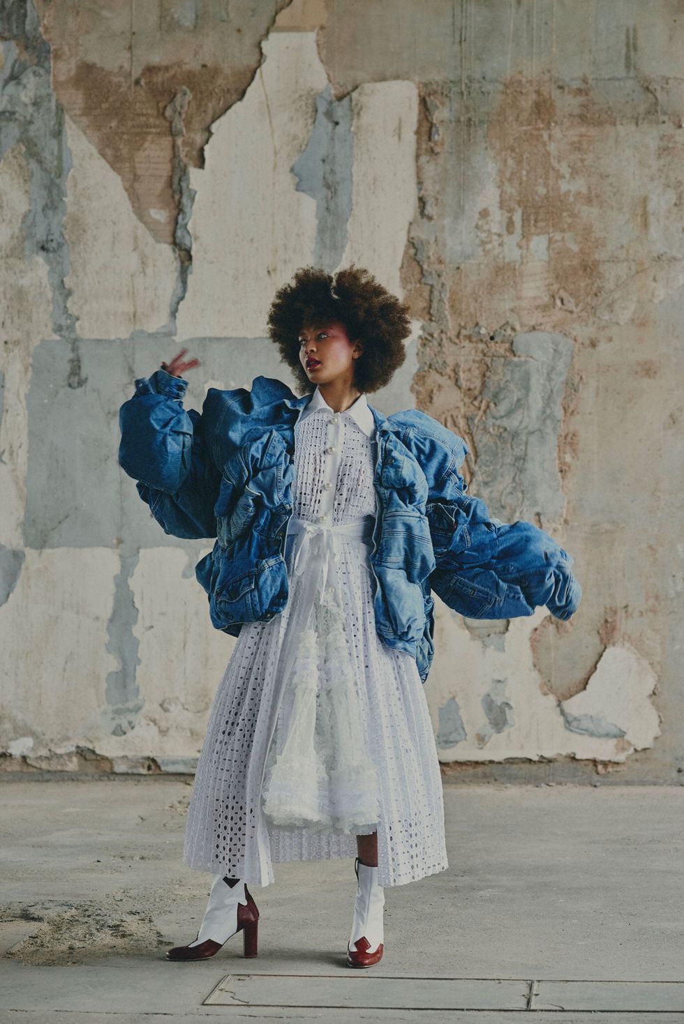 Jacket: Feng Chen Wang x Levis, Coat: Huishan Zhang, Skirt: Ryan Lo