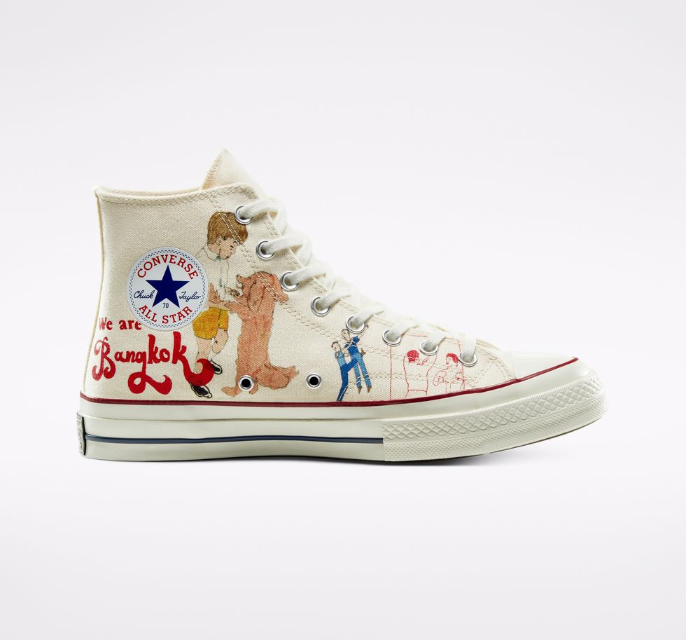 So when it came time for Tyler to handpick the next creative to design the next Artist Series with Converse, he ended up choosing McMullen after following the evolution of his work. The resulting work sees McMullen's hand-drawn prints positioned across the canvas of the Chuck 70 which he designed from his LA-based home studio.