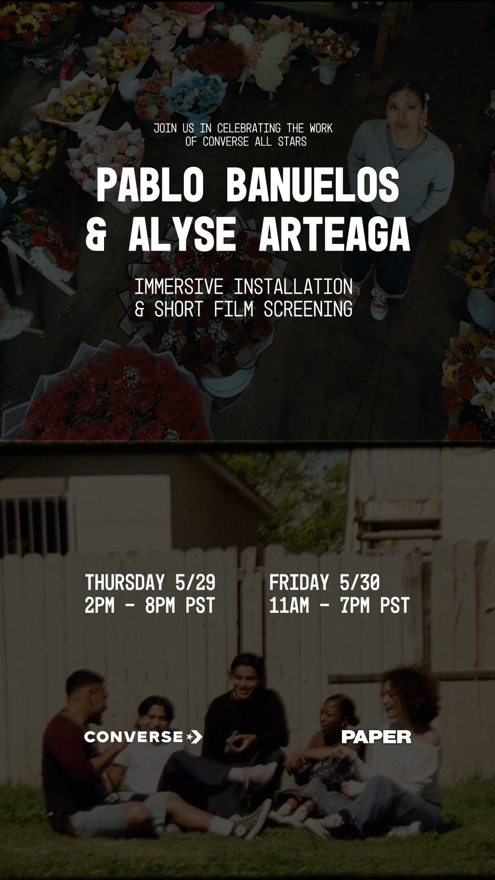 Converse’s “Love, Chuck” campaign kicked off an incredible opportunity to celebrate the work of emerging artists Pablo Banuelos and Alyse Arteaga, who each offered their own love response to the brand’s campaign with personal video works. PAPER and Converse are throwing an event called “Love, Chuck: Scenes from LA,” the event will feature an incredible floral display reminiscent of Banuelos’ film Flower District with take-home bouquets by Danny’s Flowers and a cinematic manual film experience highlighting Celluloid by Arteaga. It’s all a fresh and interactive way to honor the iconicity of Chucks in fashion and pop culture through a Hollywood-inspired premiere of the artists’ works — and a chance for Angelenos to show up in their own Chucks and celebrate.