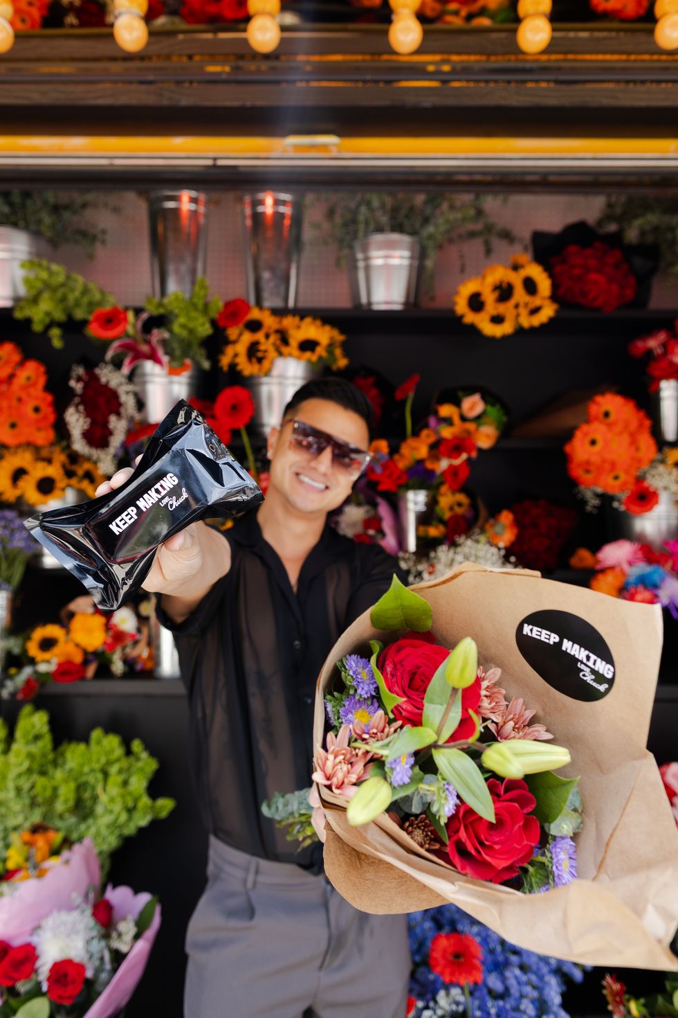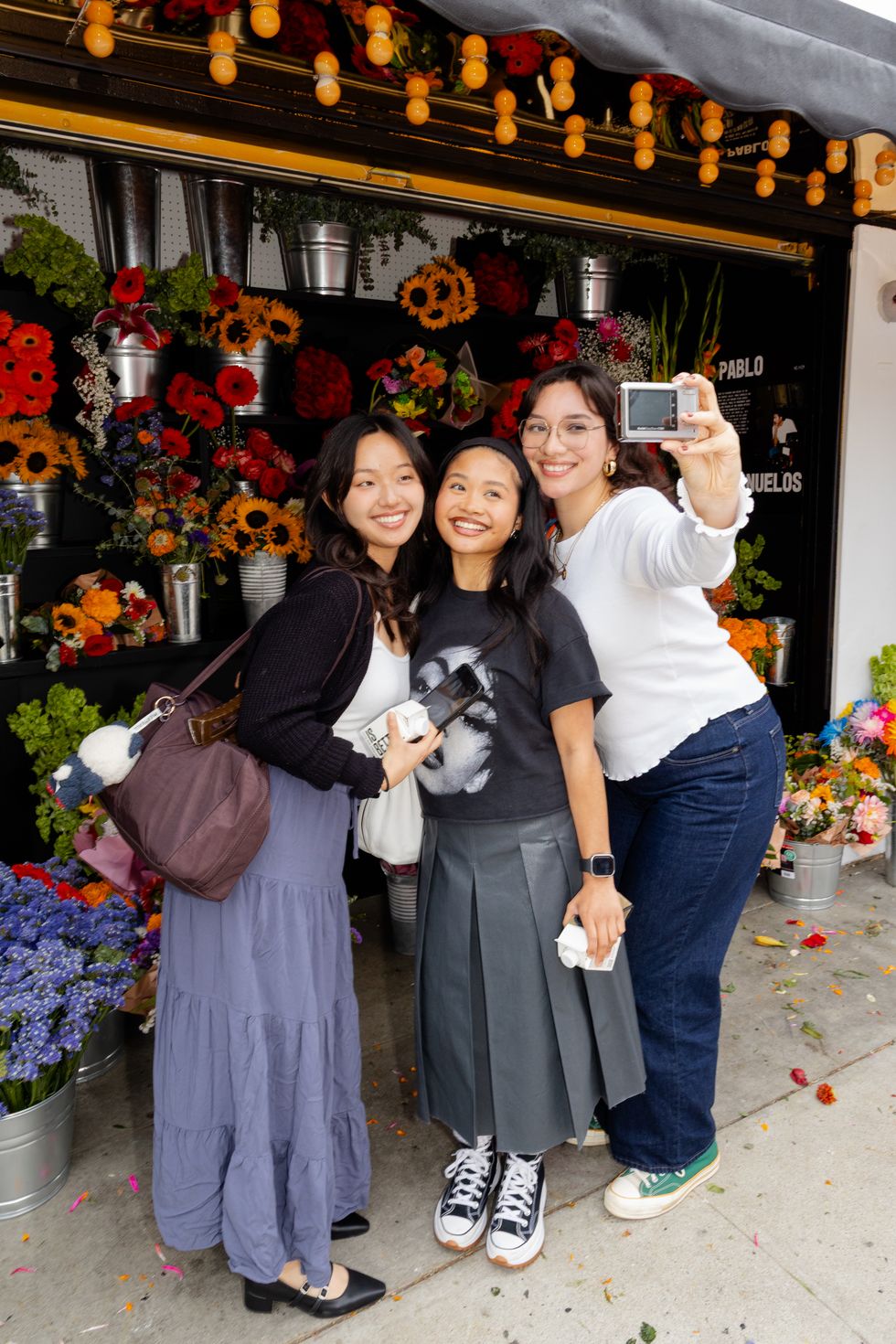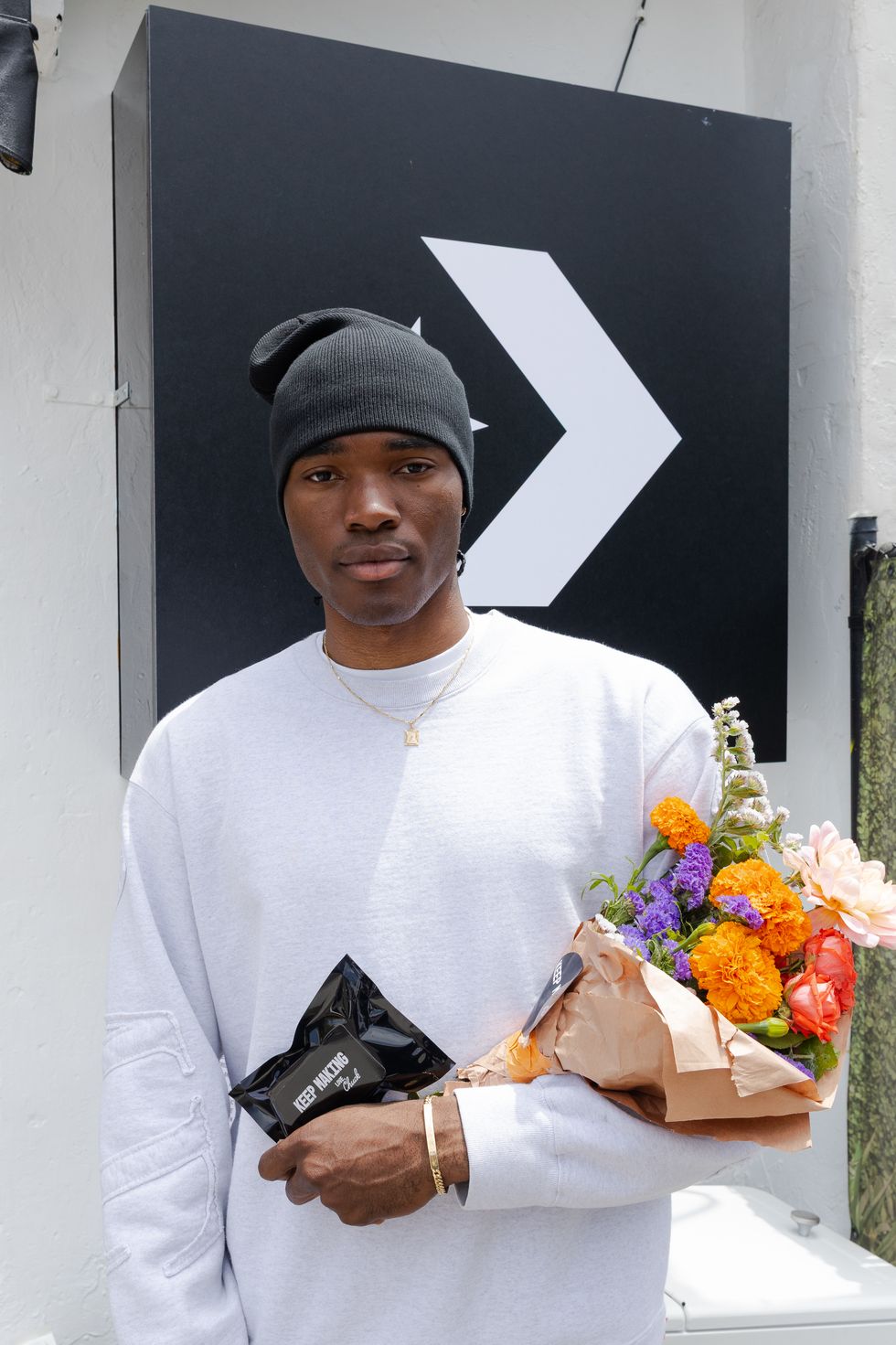 Converse brought Banuelos’ vision to life with a giant wall of real flowers designed by Glorimer Flower & Company and take-home bouquets from Danny’s Flowers. Visitors hung out in front of the three-part kiosk, sipping juices by Crenshaw Juice Company, snapping photos on disposables, flowers in hand and, naturally, wearing their best Chucks.