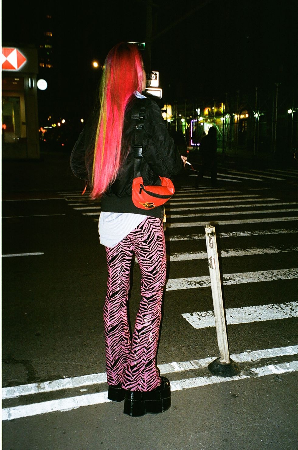 Depending on how stressed I am it will be bobbing or more of a flash! Then you'll hear my big platforms clumping around in the back. I've had green and pink almost a year. Originally it was yellow and purple. Then yellow and blue. Then yellow and pink. Then green and purple. Then green and pink. And I did the green and pink because it was summer and I decided I wanted to be a watermelon for the summer. And I thought that was hilarious, but it kind of stuck. I've been thinking I need to change it soon, but it's starting to become so recognizable.