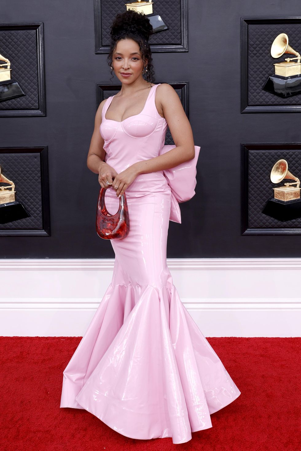 As lackluster as the fashion at this year's Grammys may have been, the real winners of the red carpet were arguably Coperni, whose viral glass-blown shoulder bags were carried by Doja Cat and Tinashe. (Doja wore the icy blue variant and Tinashe modeled a custom red rendition.)