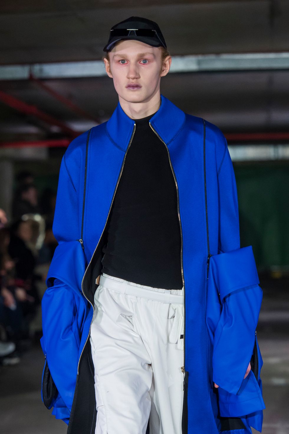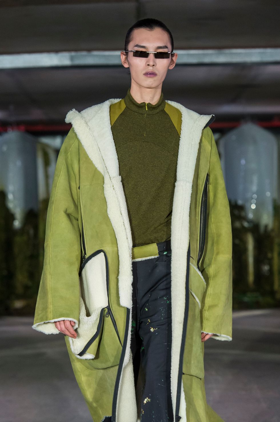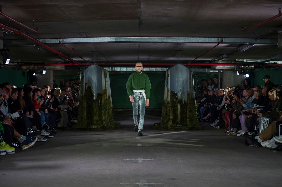 London menswear brand Cottweiler debuted their fall 2019 show under a dimly-lit east side garage, with the theme "the lost art of cruising." The immersive world of the show was designed to replicate a private public space where people find others to bang, but taken even more literally, with moss-covered urinals lining the runway's edges and a fenced border recalling the shadowy sections of public parks.