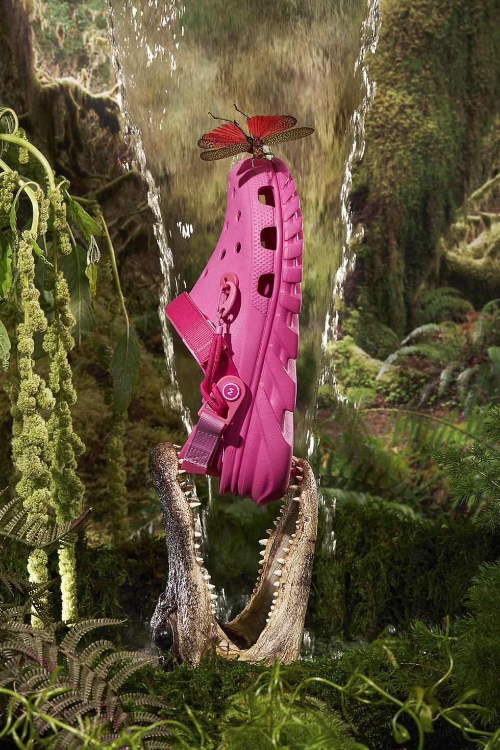 Crocs has also carried this ethos into its standard line this year, introducing styles that take design cues from past collaborations like the platform Bae, outdoorsy All-Terrain and Venture Pack, as well as putting forth new concepts like the puffer-inspired Neo Puff, and rolling out a slew of new graphic patterns and on-trend colors. Wilhelm explains that the Classic Clog still remains at the core of Crocs' DNA. "It is the ultimate canvas for creativity, and as a result we have rolled out more silhouettes and trend-focused updates that resonate with consumers around the world," she says.