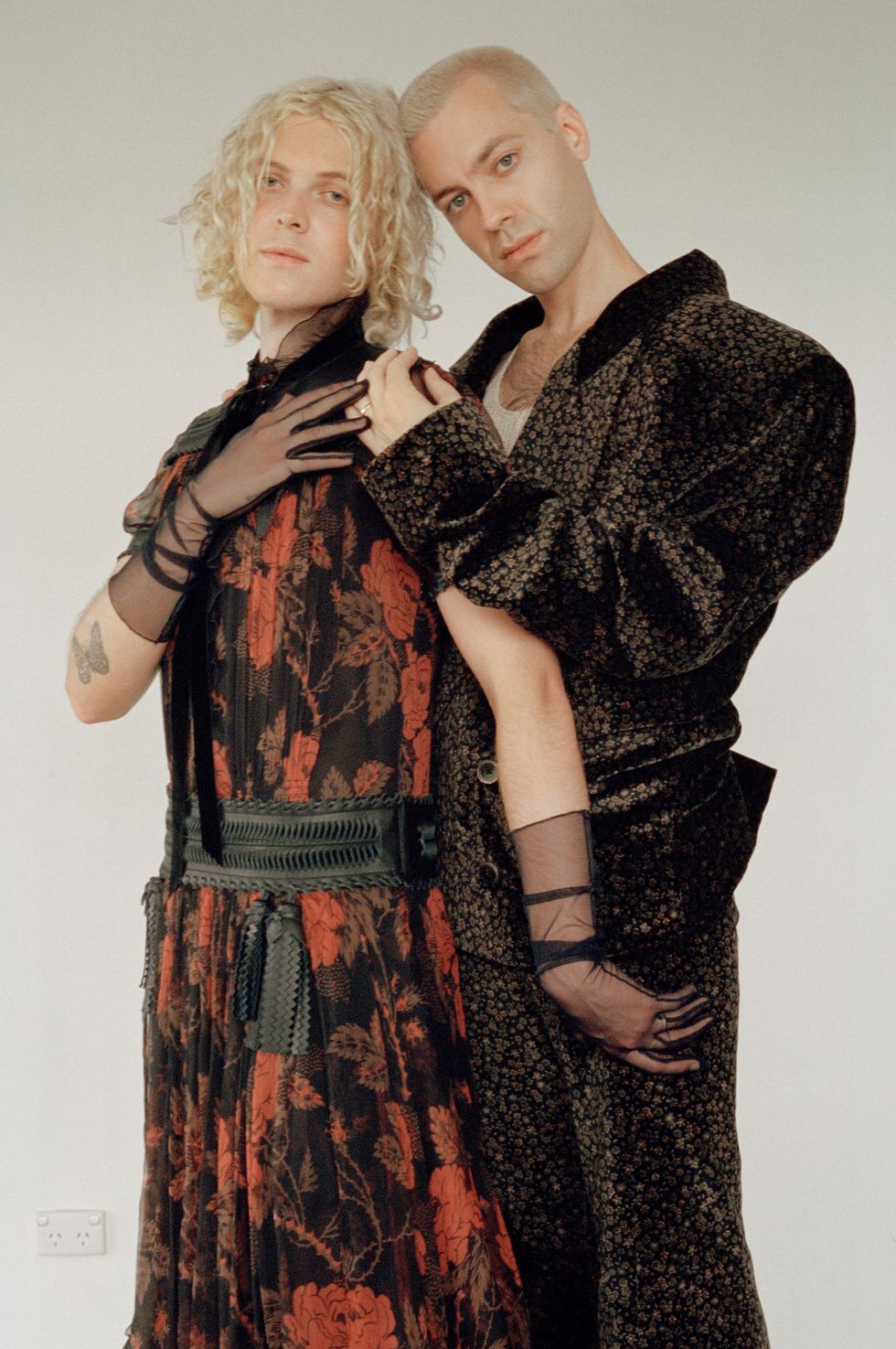 (Sam) Coat: Charles Jeffrey (Tim) Shorts: Charles Jeffrey, Gloves: Max Mara