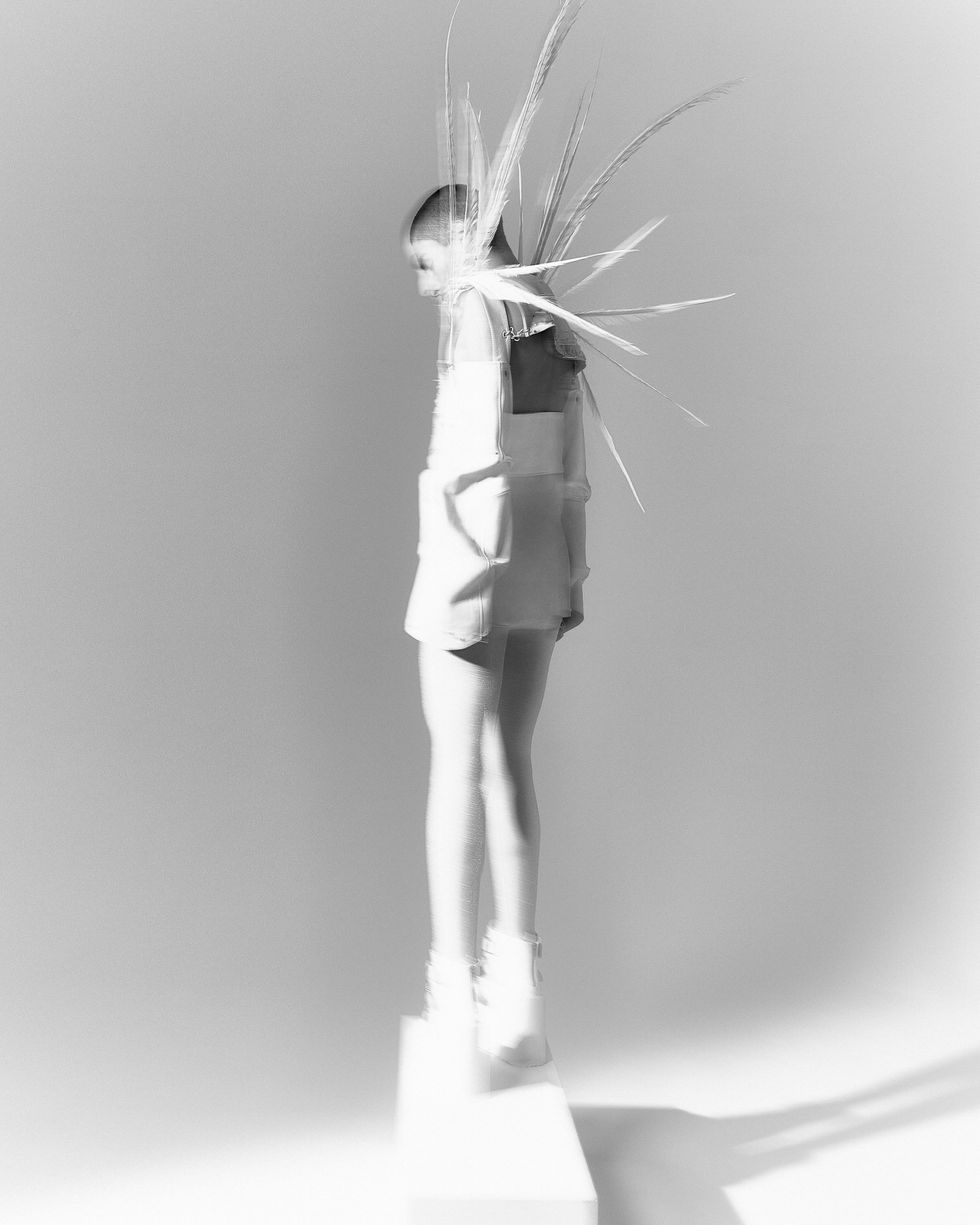“The collection is inspired by queer people, and I wanted to bring awareness and visibility to queer people’s contributions to culture throughout history. People like Elton John, Judy Garland, and Freddie Mercury were all in mind,” Cassel says. “I wanted to stay away from color and wanted the collection to feel like black and white photography. You’re forced to take a closer look at the content of the material.”