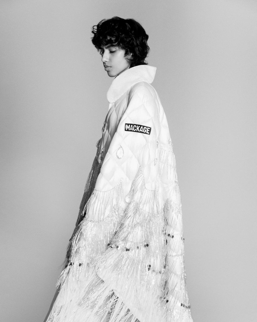 As the designer behind Queera, a New York-based luxury brand that specializes in avant-garde wedding and ready-to-wear pieces, Cassell wanted to pay homage to LGBTQ+ icons throughout history in a manner that feels bold but tasteful. “People enjoy music by queer people and glamorous things by queer people but, at the end of the day, nobody seems to want to talk about the queer people behind them. This manifested into three neutral coats built around classic Mackage silhouettes. “I had iconic fashion and LGBTQ+ moments in mind. Everything from Cinderella’s transformation into her ballgown, to moments in the film,” Cassell says.