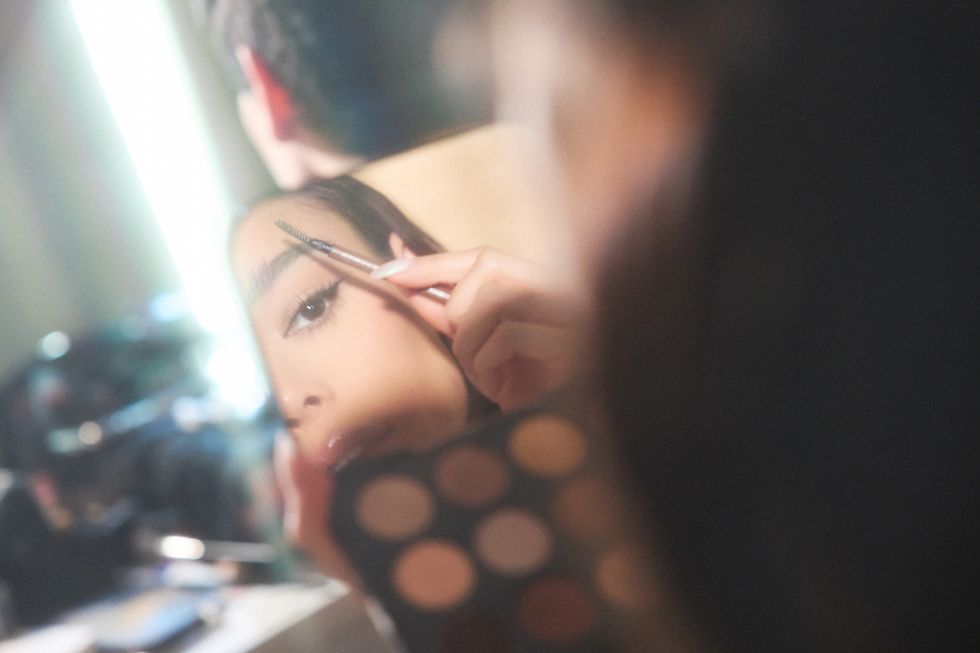 For the VMAs, I wanted a look that felt timeless, but still bold and risky. Last time, my makeup artist Emilio Becerril and I played into to my dark era with the dark, vampy lips. This time, we did a more celestial approach with iridescent shadows to give my eyes that galaxy-like glow. We added a sharp, geometric liner for an edgy vibe.