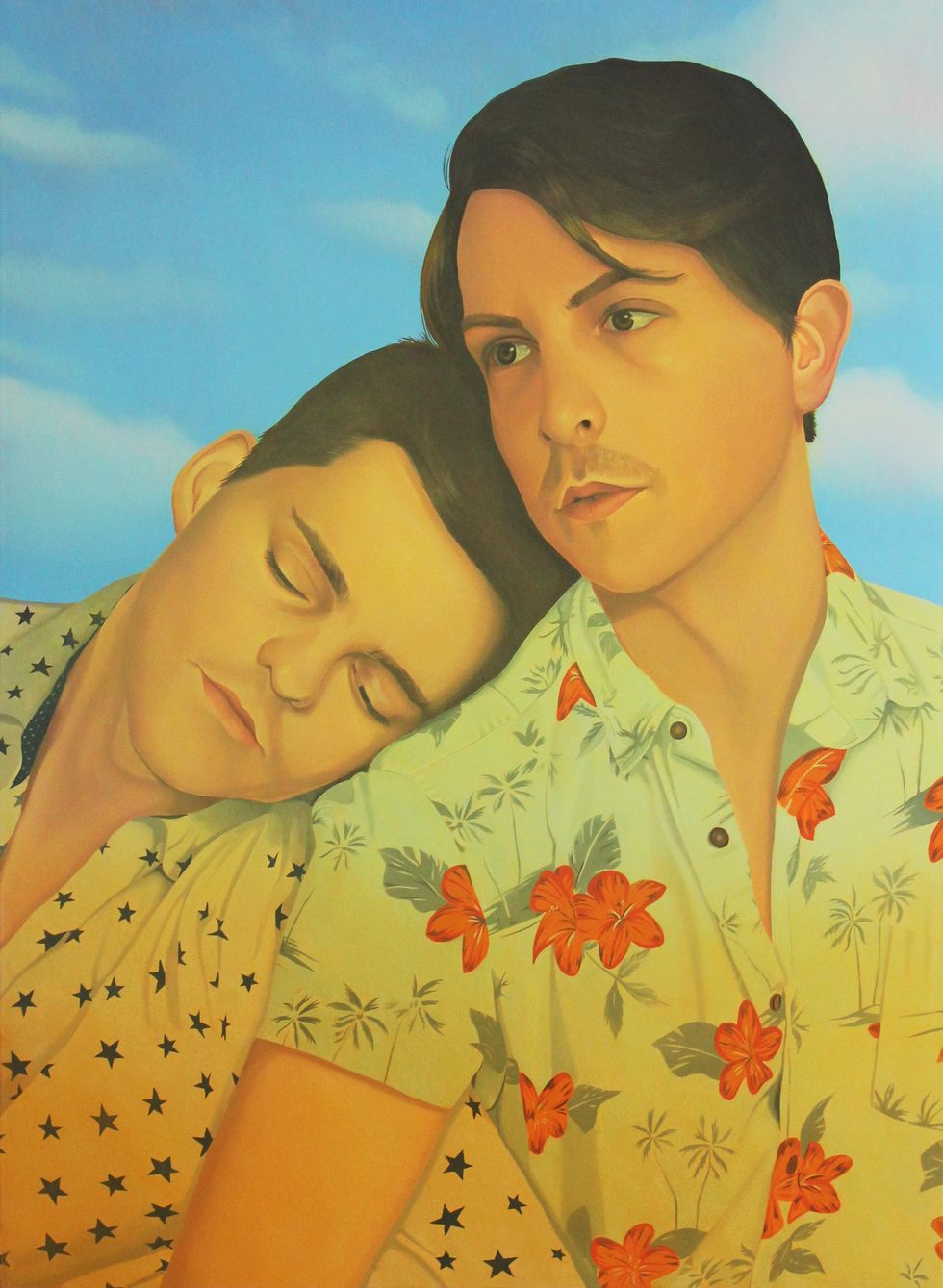 I'm looking to make paintings about love — love between two men, love between man and dog, love of oneself. So, I choose the subjects of my painting based on the level of emotional connection I share with them. Generally, the figures are good friends, my partner or acquaintances that I find interesting. I'm also looking for people that have a specific "look," one that is not co-opted by our accepted rules of beauty, but embody something outside of that convention, which needs to be recognized and valued.
