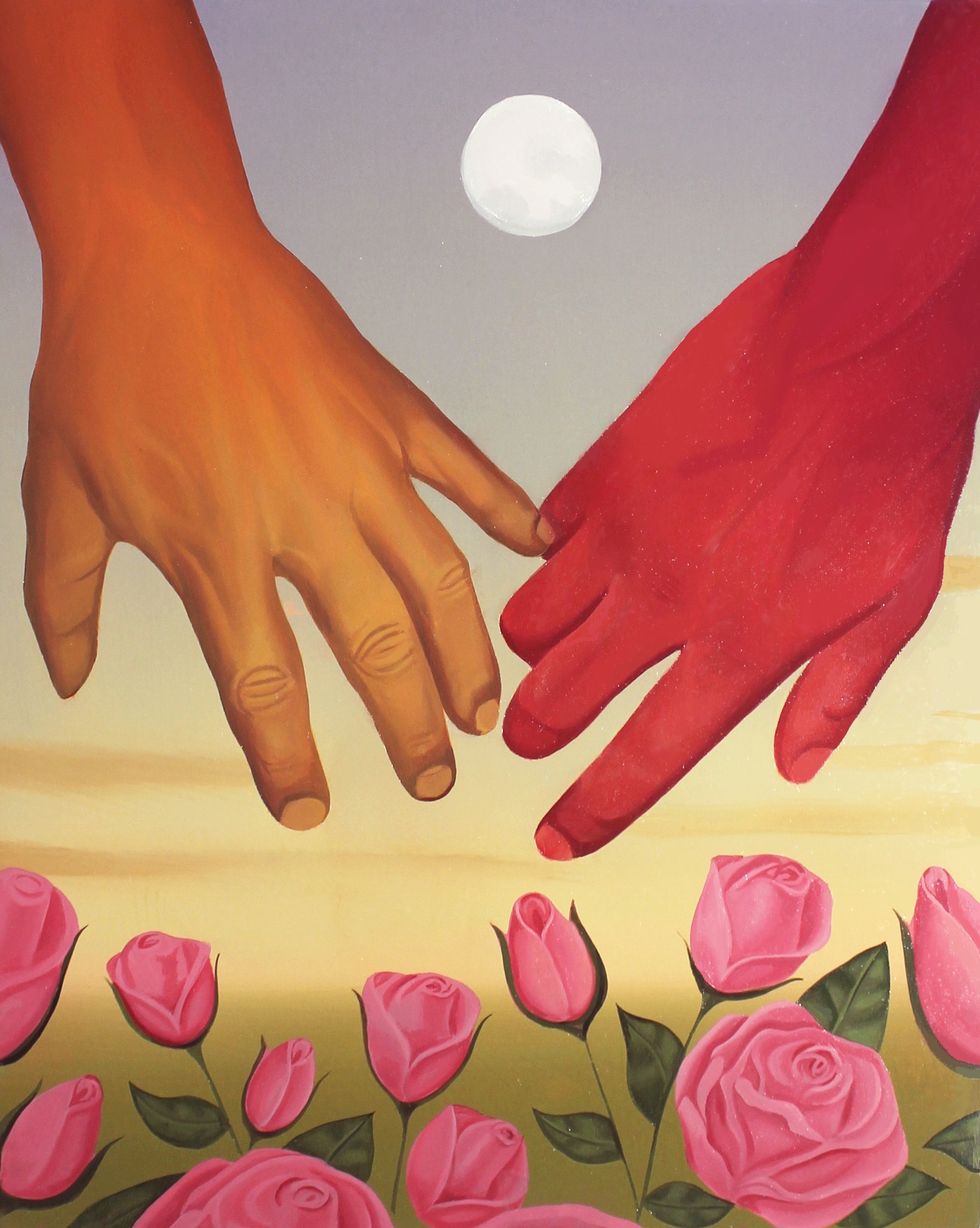 My sense of self is positioned quite intimately in the paintings, and every choice I make in the work is derived from my tribulations, experiences and interests. I love color and beauty, pop culture and fiction — all aspects that are revealed in the paintings. In virtually all creative fields, the maker is almost always evident in the final outcome.
