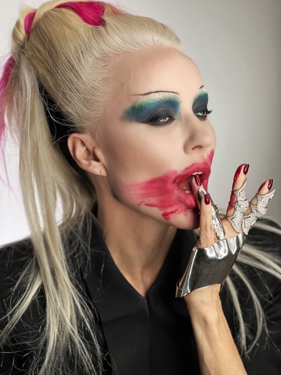 From this vast archive of books and music and film and art, she pulled the apocalyptic imagery of her LaChapelle-directed film Revelations. On this next album cycle, the video for “Time” flirts with references that range from Marlene Dietrich to Fritz Lang’s Metropolis. “Volcano,” also directed by LaChapelle, weaves in ‘80s pastiche and pulp cinema, while “Hip Neck Spine,” directed by Nick Knight, is an occult disco phantasmagoria. I point out that the through line of the album, contrasted with 2020’s brooding Revelations, is a groovier sound, more dance-forward than the last. There’s also middle-eights at that, a lost art in music, and Guinness laughs at the mention. “I’ve done middle-sixteens!” I posit, stuck on the topic now in my mind, that her music resists trends across the music recording landscape, to streamline sounds for online consumption, for use on TikTok. “I suppose in a world where, increasingly, real humans are being replaced by machines, trying to stem the wave of AI is impossible, but I want to be a little bit of a vanguard. Not that I’m super important or anything, but I want to try and keep the humanity in music. I think it’s an important thing.”