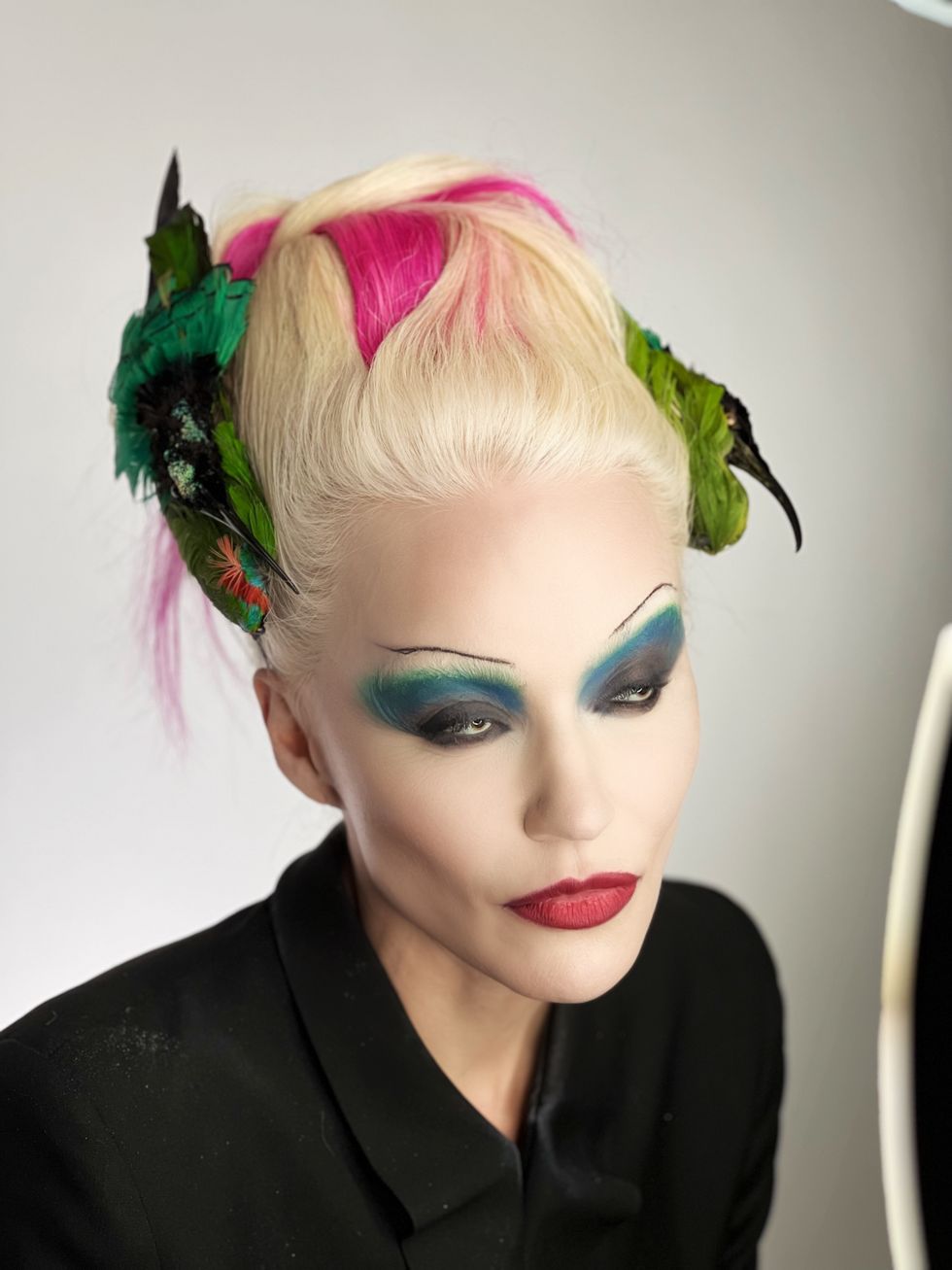 Despite the heightened imagery she is known for, Guinness is surprisingly analog — as she describes it — in her artistic process. One she says has been honed by her decades-long friendship with LaChapelle. “Having had the childhood I had, I learned a kind of very rough circuit, I learned early about light, I learned early about having to make things oneself, and being able to wire things, being able to light things, being able to create something.” Most importantly, she says, being able to “place it in a space to be observed. You create an atmosphere. The first rule of artists is light. The second rule is color.”
