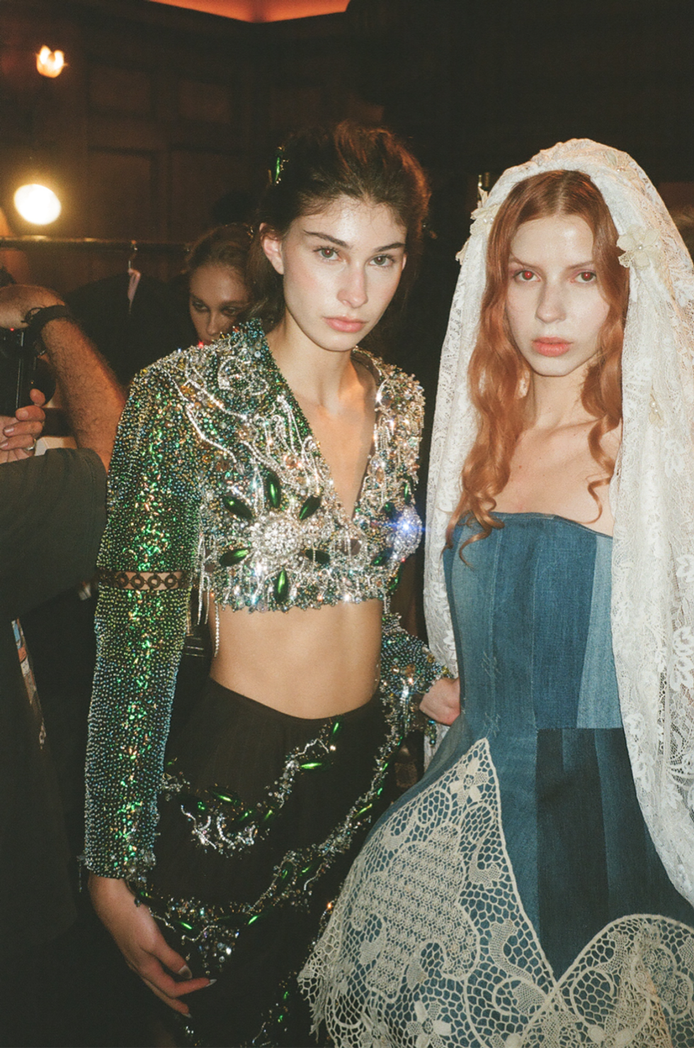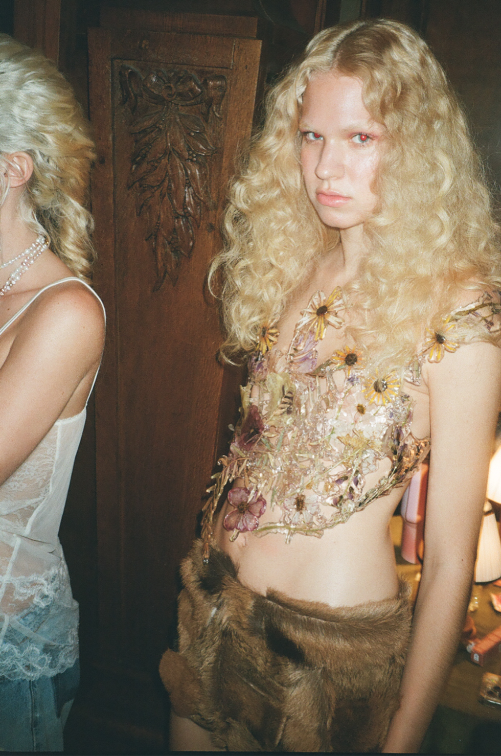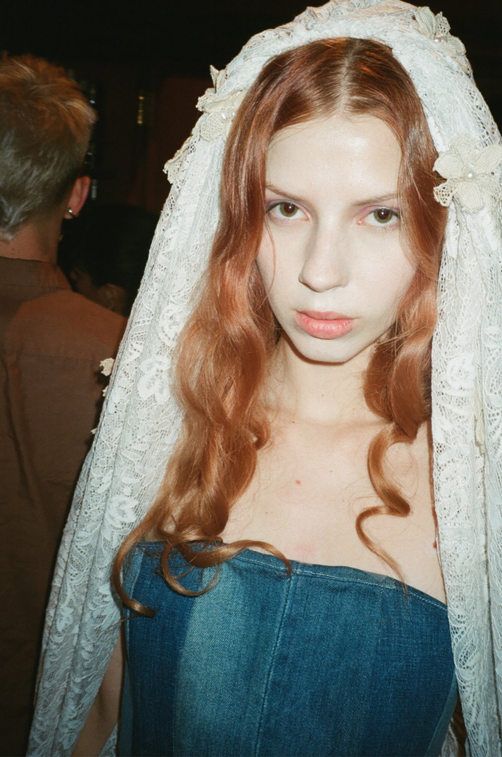 Eerily alluring, yet inevitably charming Dauphinette design elements continued to emerge as models sashayed across the runway — real green beetles preserved in resin, uncanny silhouettes and macabre references. But the array felt like a more mature expression of Cheng’s artistic perspective. It paraded mostly couture-inspired looks, but more wearable options were also sprinkled in, displaying an intentional sense of refinement. These more ready-to-wear ensembles took the form of mermaid-inspired denim pieces and lacy tops, and they proved Cheng’s range.