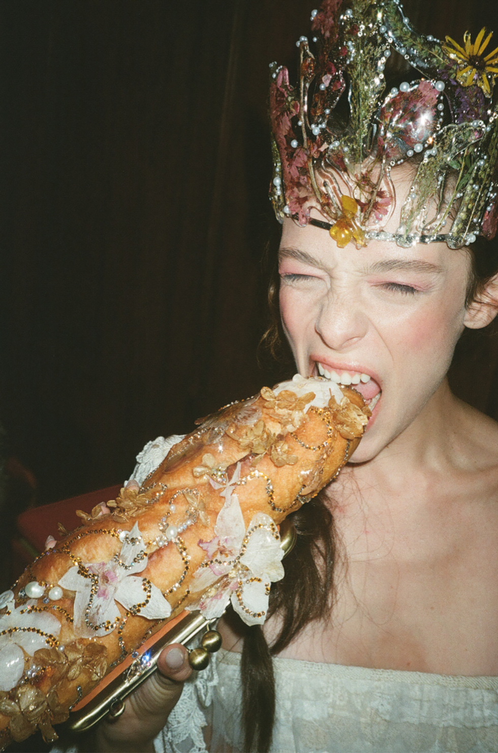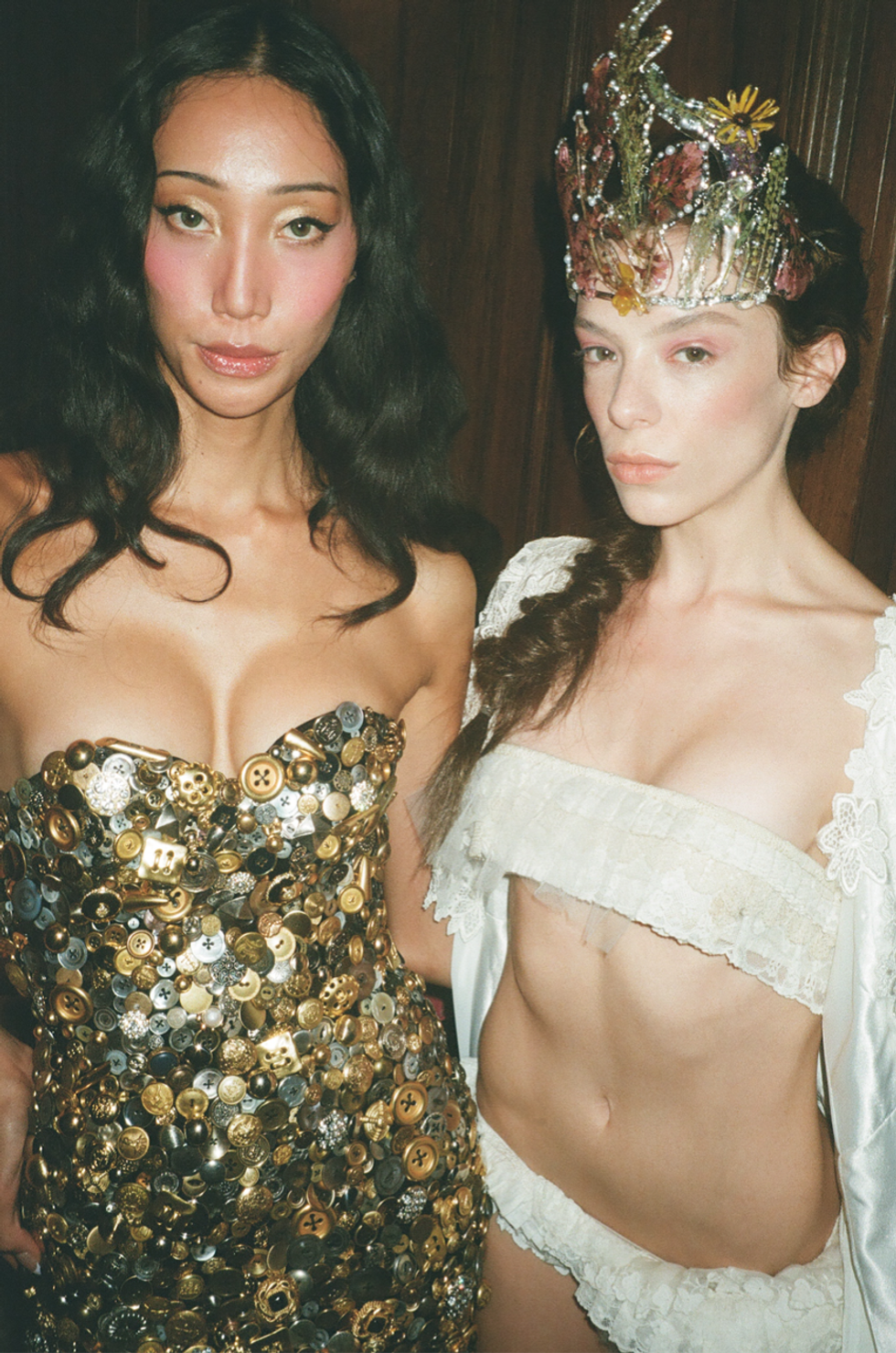 Cheng doesn’t prescribe to the tortured artist mindset, but she can’t help the turbulence that comes along with being a creative pressured by the confines of the industry — let alone the turbulence that comes along with just existing as a woman. Although her early collections may have felt more flouncy and lighthearted, topped off with hyper-feminine motifs like oversized bows, the designer’s Spring 2026 collection revealed the dark underbelly of womanhood. Sometimes it comes along with mixed emotions. Sometimes you just have to try to put mismatched pieces together and see what bigger picture they create. Out of Cheng’s pursuit of understanding that bigger picture, "Human Behavior: Animal Instincts & A Decaying Sense of Girlish Wit," was born.For Dauphinette, the devil is always in the details. Cheng often incorporates found items from her personal collections — buttons, keys, seashells, 24-karat gold flower petals — into her designs. But this collection took that attention to detail to new heights — a hand-sewn button-encrusted mini dress, a striped seashell polo top, a mock-neck top, stilettos covered in watches and a seashell frock (a continuation of her previously lauded matchbook frock) were standouts.
