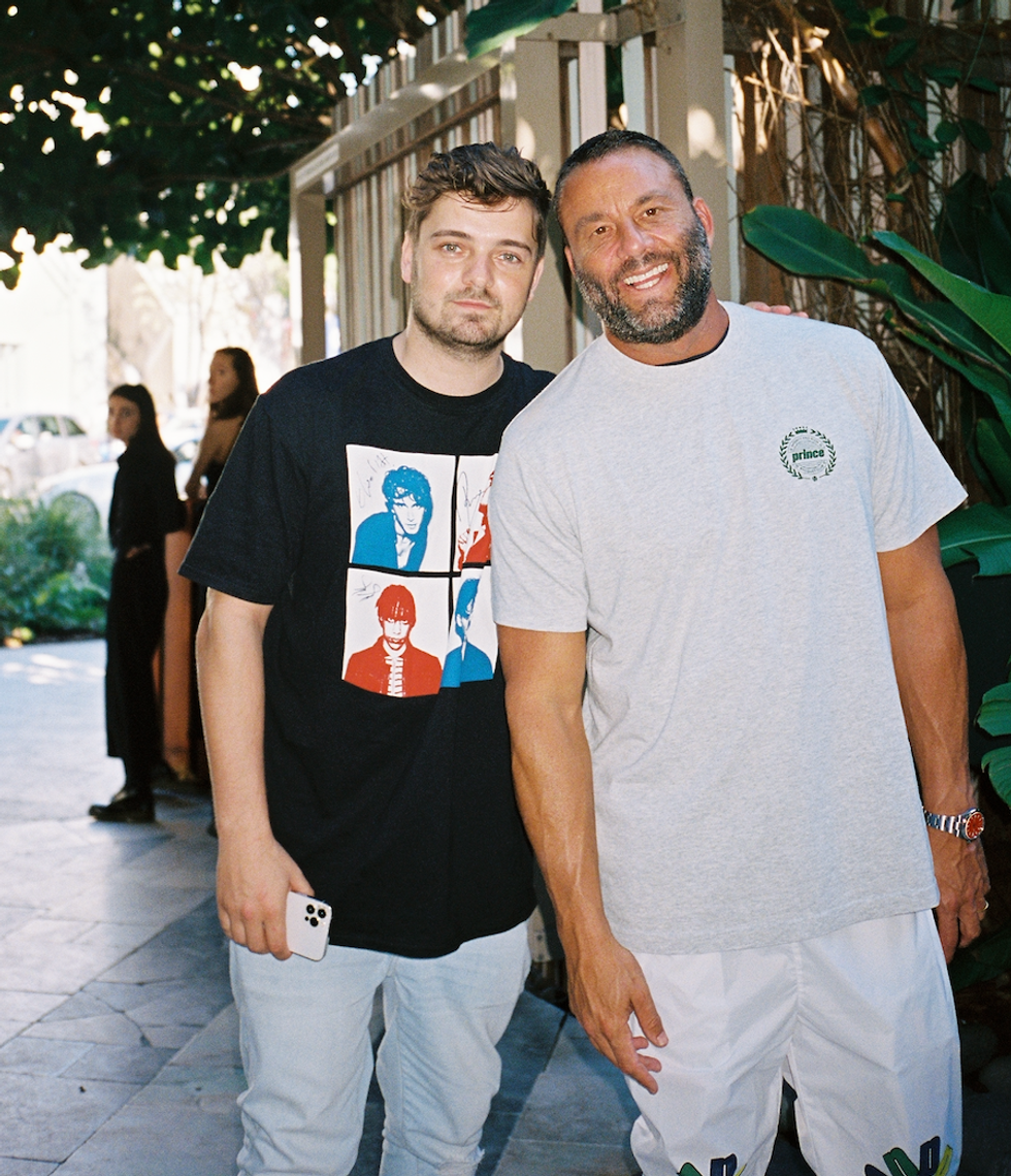 So you can imagine his schedule during one of Miami's busiest weeks is nothing short of loaded, particularly after last year's official festivities were canceled due to the pandemic. A typical Art Basel day for him includes a brunch for Sporty & Rich's collaboration Prince (he became a partner with the tennis brand three years ago), a movie premiere with his business partner Pharrell, an event with Chanel and Rosalía, Shabbat dinner, and stopping by his clubs where Martin Garrix and Kaskade will perform.