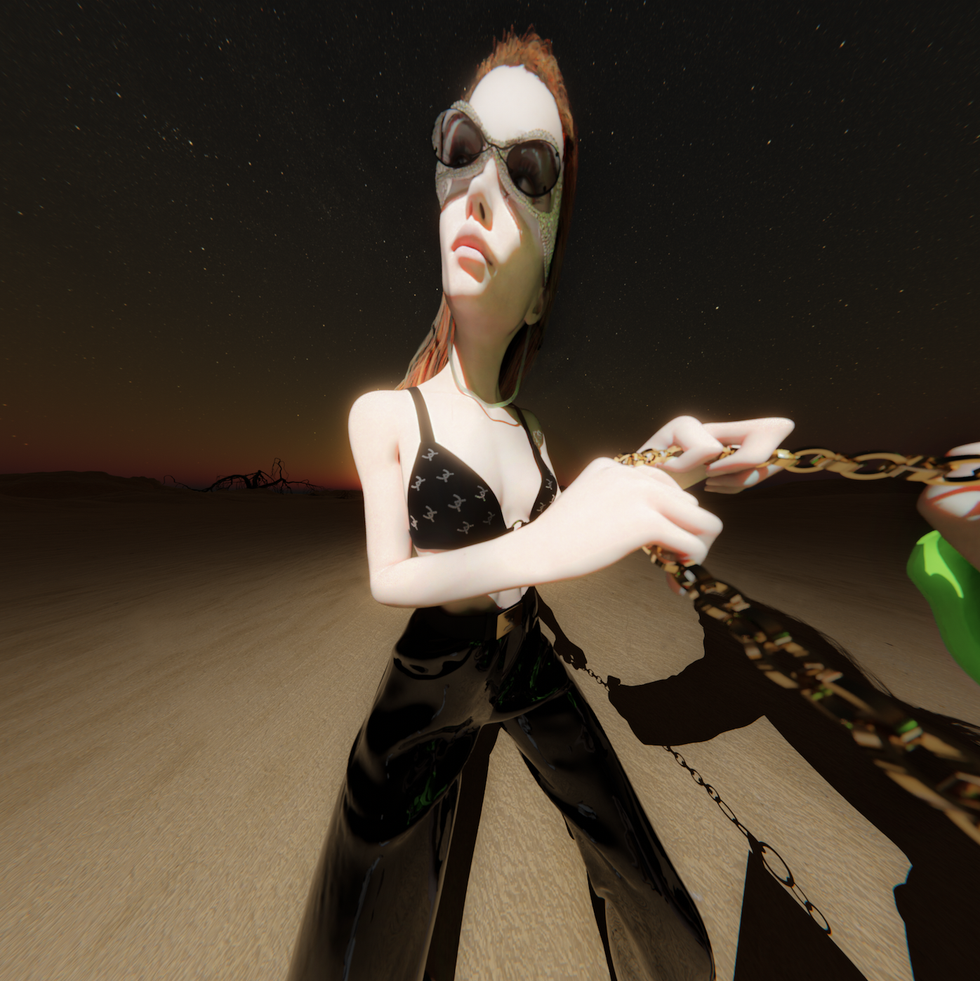 The idea transpired in one of Koma's quarantine daydreams — in the face of the global pandemic and the confines of travel restrictions, the designer took a deep dive into a fantasy world where reality's turmoil was non-existent. That dream, paired with a love for three-dimensional computer graphics and digital art, set Koma's fashion-filled, virtual escape plans in motion.