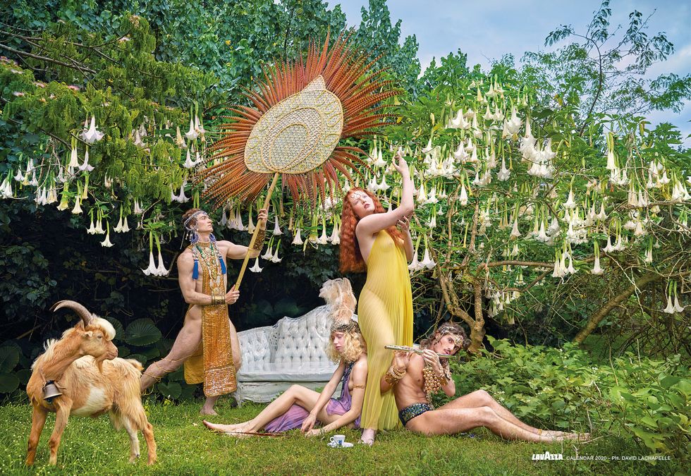 Since 1993, Lavazza has sought out photographers like Helmut Newton, Annie Leibovitz, and Platon to create glamorous, often provocative calendars that reinforce the brand's deep connection to the arts. This time around they gave LaChapelle — who was also tasked with the 2002 edition and contributed to 2012 — free reign to celebrate nature however he saw fit.