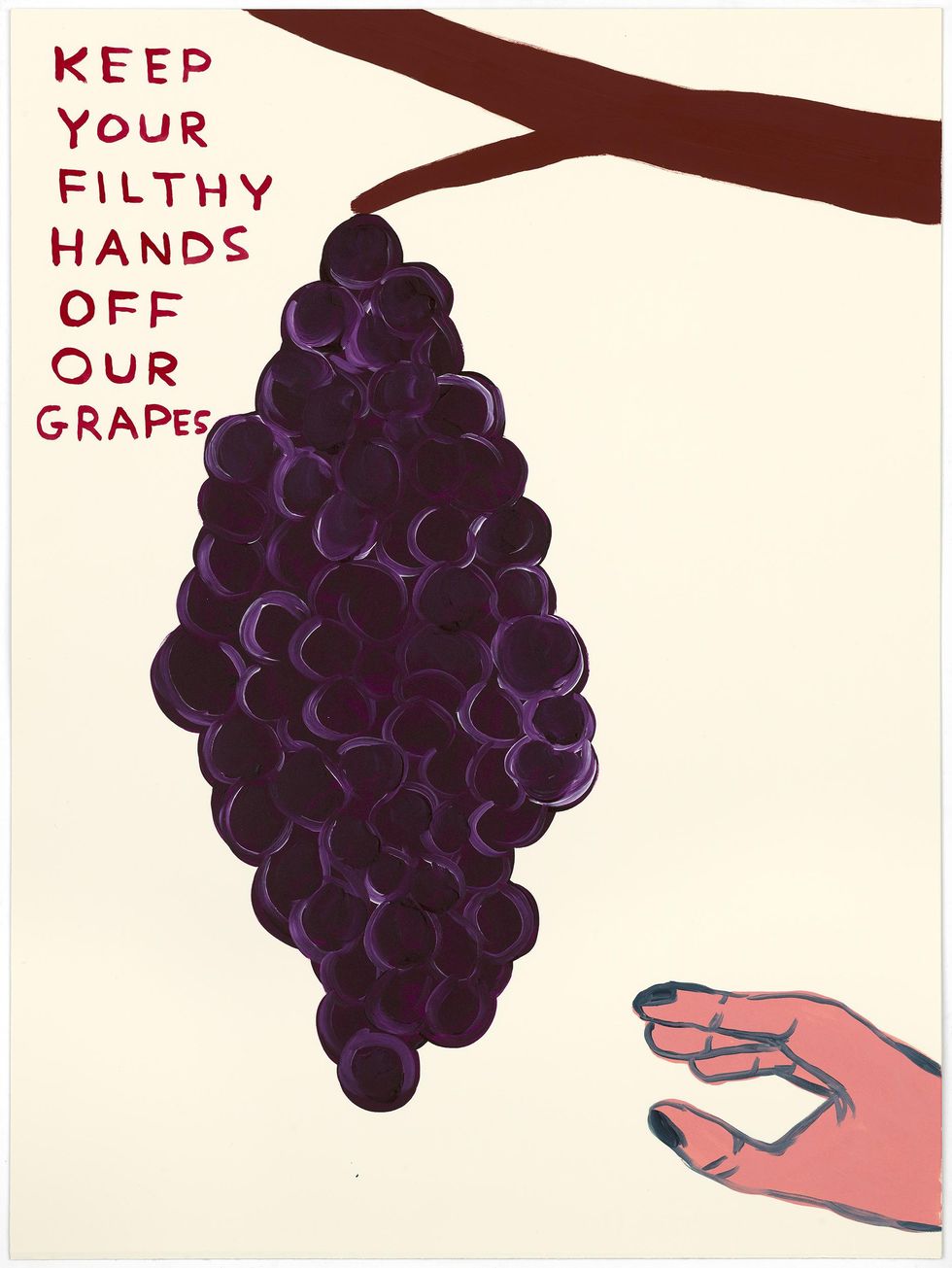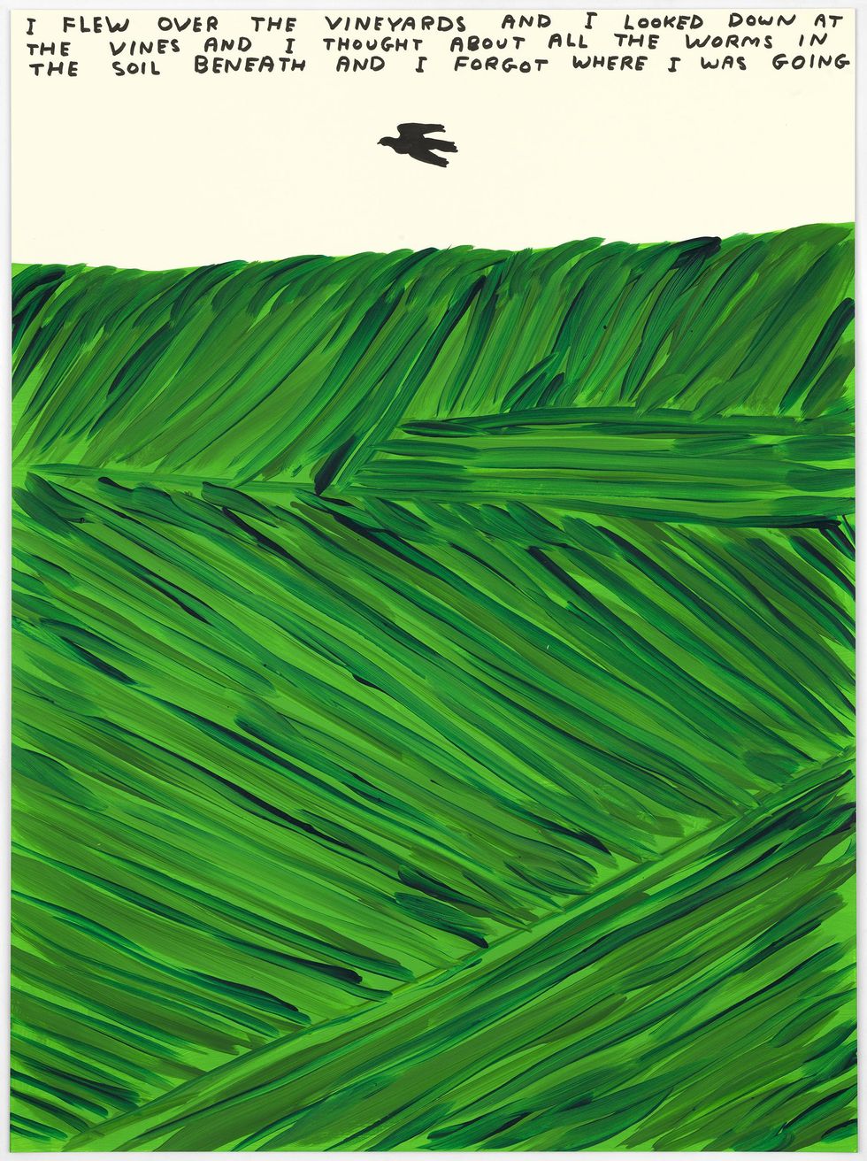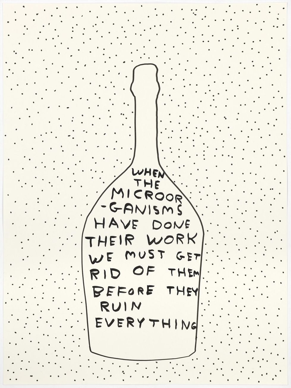 Titled "Unconventional Bubbles," Shrigley's series steps inside Ruinart, having visited the Champagne region firsthand with its historic vineyard and centuries-old wine cellars. Like all the artist's work, the complicated process of creating Ruinart products is distilled into direct messages that are easily understood and, most importantly, humorous. "Keep your filthy hands off our grapes," reads one piece, while another makes the bold declaration, "Worms work harder than us."