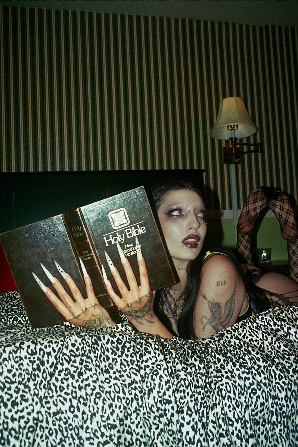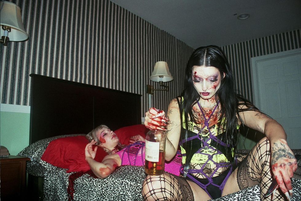 The new single arrives alongside a music video directed by DeathbyRomy and her manager, Ally Duesbury that takes the song's refrain in a more literal direction. Based loosely on the mythical demon of the succubus, the video sees DeathbyRomy cast as a femme fatale seducing her way from one target to the next, only for them to end up meeting a bloody end. The terror culminates in an all-out bar brawl, filmed at the Bourbon Room in Hollywood. A queer psychosexual hedonistic slasher flick, the music video is a mix of campy horror and high fashion styling that feels like Alice Cooper walking the runway at an Alexander McQueen show.