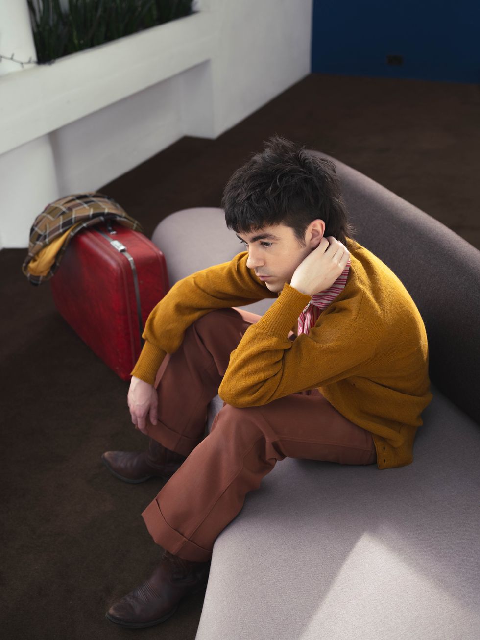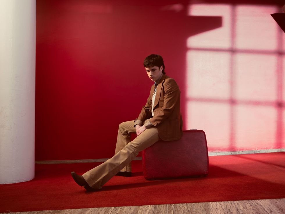 Still, as he prepared to create his third studio album What Happened To The Beach?, McKenna found himself in California, embracing the limbo between records and enjoying the “big shift like a change in weather.” Though his previous two releases, 2017’s What Do You Think About The Car? and 2020’s Zero’s, had waded into political-protest rock — and came packed with wordplay and doses of cynicism and observation draped over glittery, glam rock that would make Bowie blush — this time around McKenna decided on a different direction. His latest tracks ended up “being slightly less heavy, unfiltered and from the source,” he tells PAPER from his home in Brighton. “When I was writing a song, I wasn't necessarily thinking about a big concept or trying to communicate a particular idea. I was literally just listening to the sound and the melodies and kept working to serve the sound.”