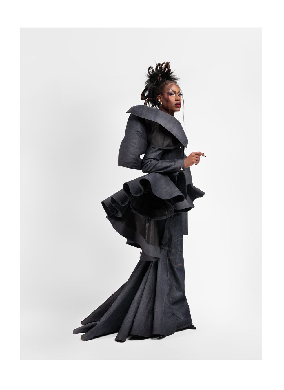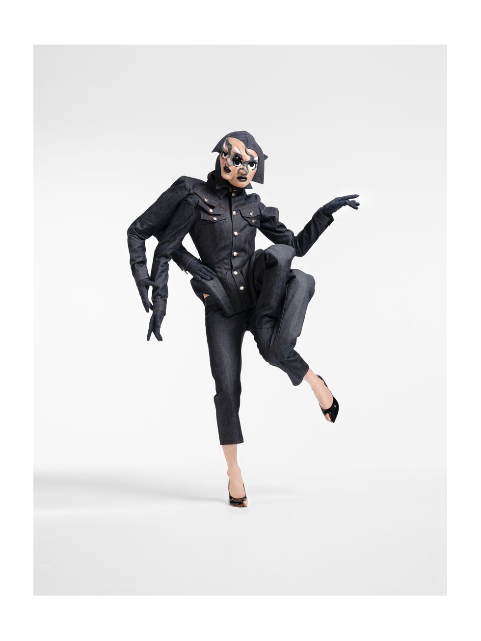 “For me, the ‘Art of Denim’ exists within,” Couleé tells PAPER. “It’s like endless possibilities.” Created in collaboration with Amsterdam-based costume design studio The Nightmare Disorder (TND), the campaign features one distinct, couture denim look custom made for each queen, combining G-Star’s signature dedication to craftsmanship with the intricacies and innovation of modern day drag artistry.