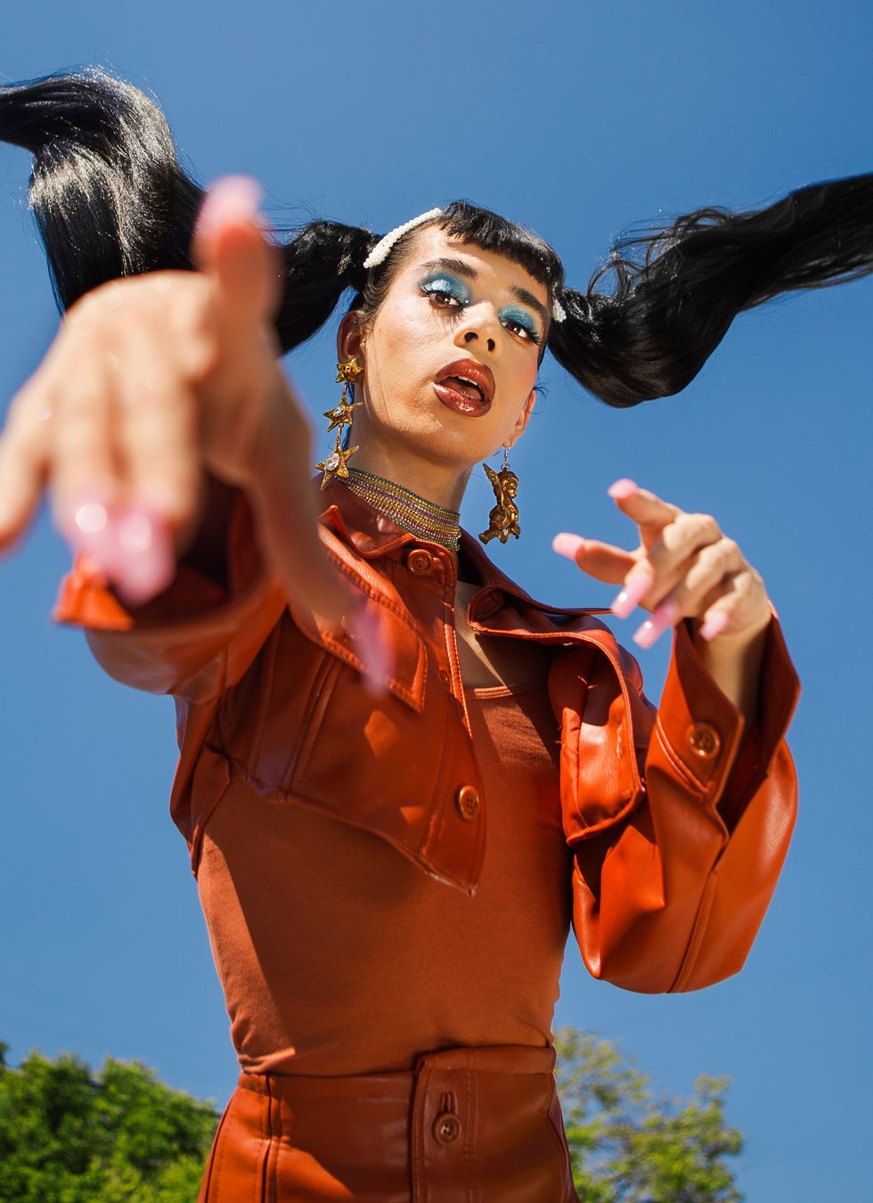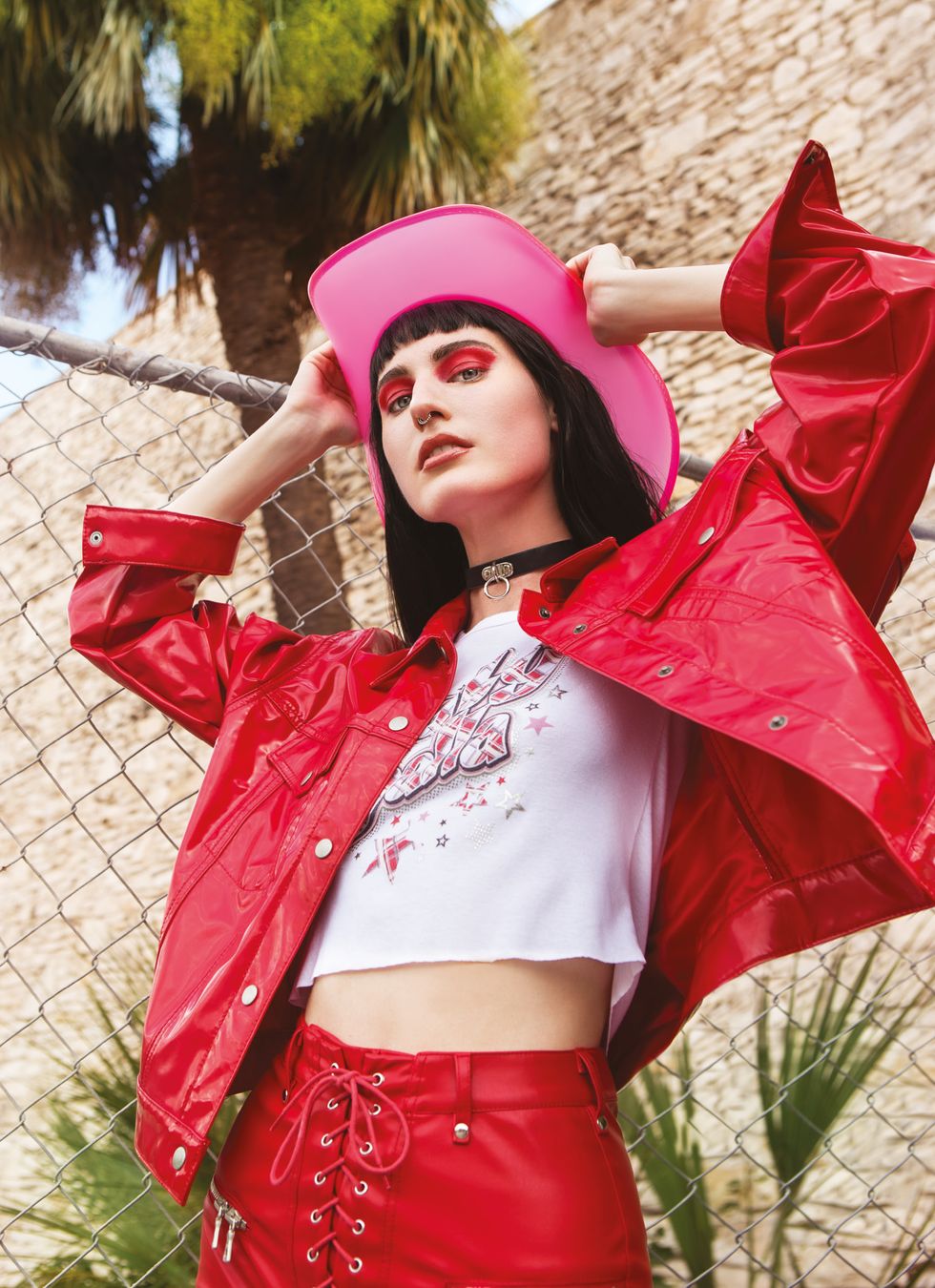 Troy is an Austin-based LGBTQIA+ icon, designer, and 3D artist who also hosts drag shows. She uses thrifted fabrics and reworks them to make new items like tiny glasses pierced with belly buttons rings and upcycled corsets. She frequently goes thrifting with fellow campaign star and best friend Belladonna, whom she also shares a closet with.