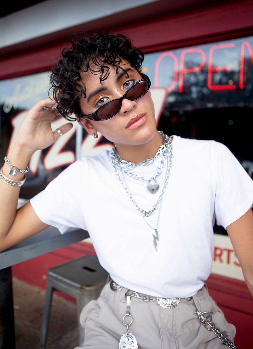 Jesse is a senior in high school who loves thrifting and accessories. (Brands like InternetGirl often send him jewelry for him to promote on his Instagram account.) He plans to major in business and minor in graphic design in college.