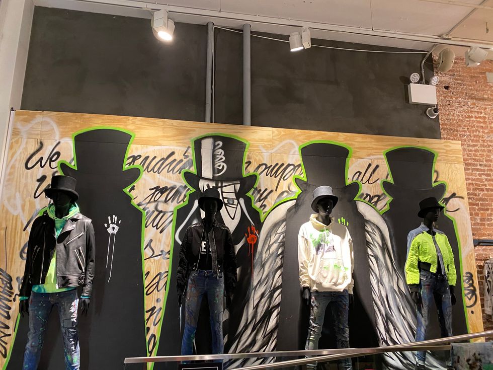 Those signatures once again prevail in his latest project, a brand new window installation done in collaboration Diesel for its SoHo outpost. The denim brand tapped Optimo after the graffiti artist created a jeans mural earlier this year on the window's storefront, which had been boarded up during the riots in May.