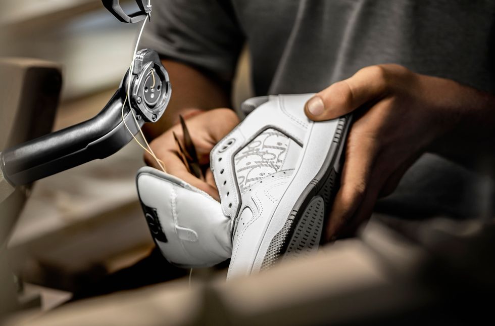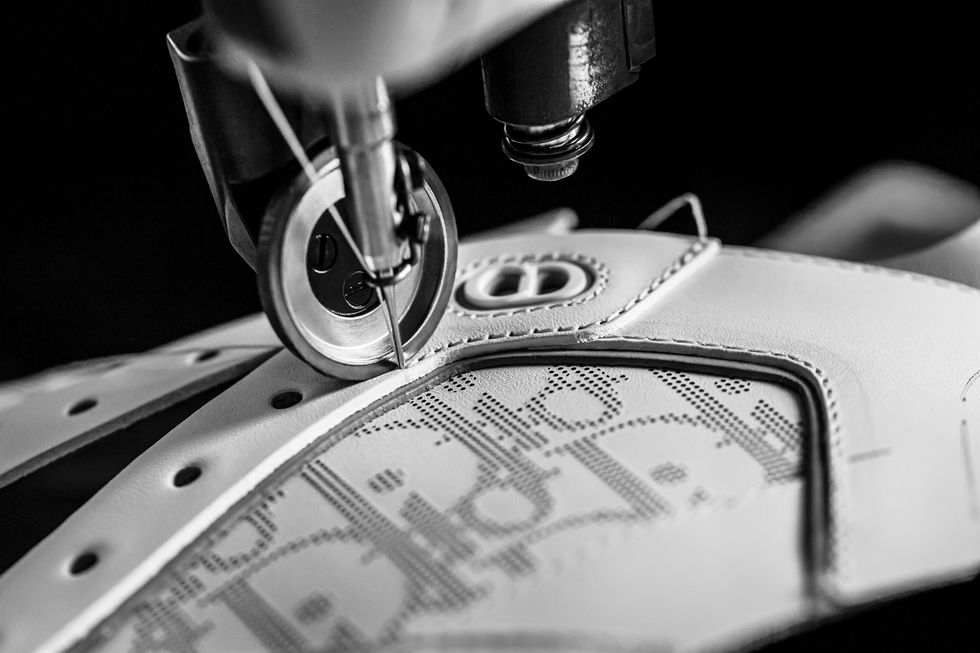 Jones took inspiration from the vintage look of '80s tennis shoes and the world of skateboarding when designing the B27, which was made with intricate leather-working, edge-dyeing and topstitching techniques in Dior's Italian workshops. Its inlays are combined to create a 3D effect, while eyelets shaped after the "CD" logo and "DIOR" embossed on the heel act as further nods to house codes.