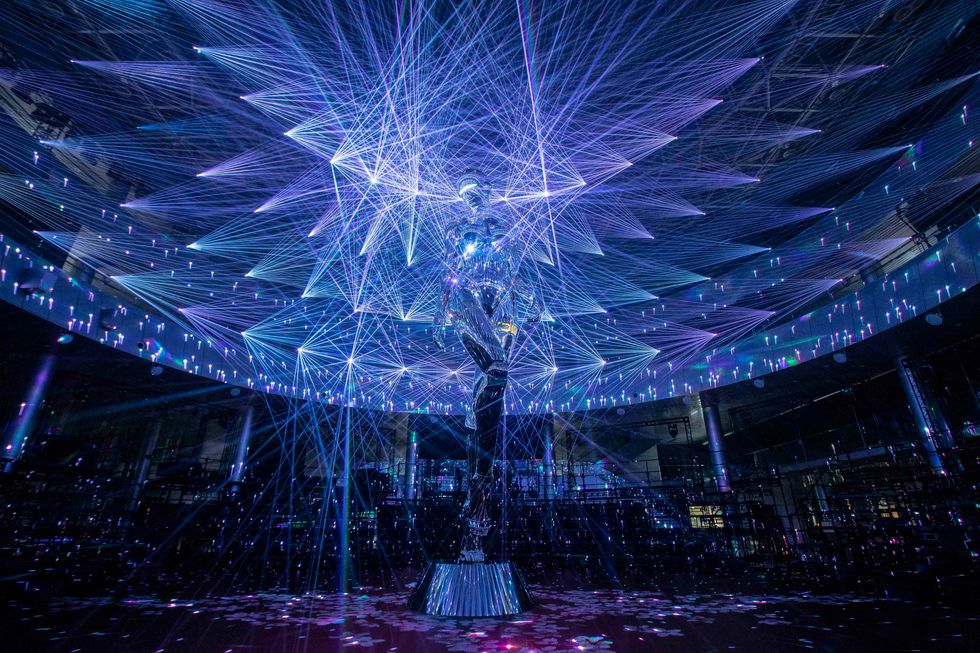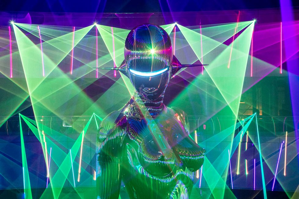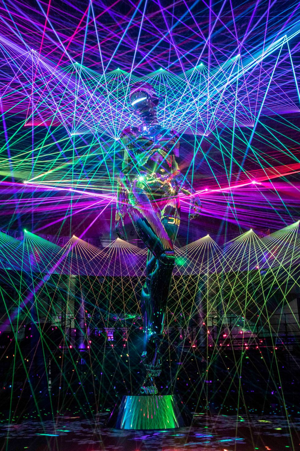 The construction process of this robotic creation began in mid-September, taking 20 days to paint and requiring a team of 16 people to install the robot onsite. Not to mention, the whole Mr. Roboto fantasy is illuminated by coliseum-style, ultra-LED laserlights, which feels very End of Days meets Blade Runner-style futurism via an old-school Grace Jones performance or Daft Punk video. Not mad at any of it, especially the way this centerpiece doubles as a futuristic symbol of worship to the power of woman, whether cyborg or real.