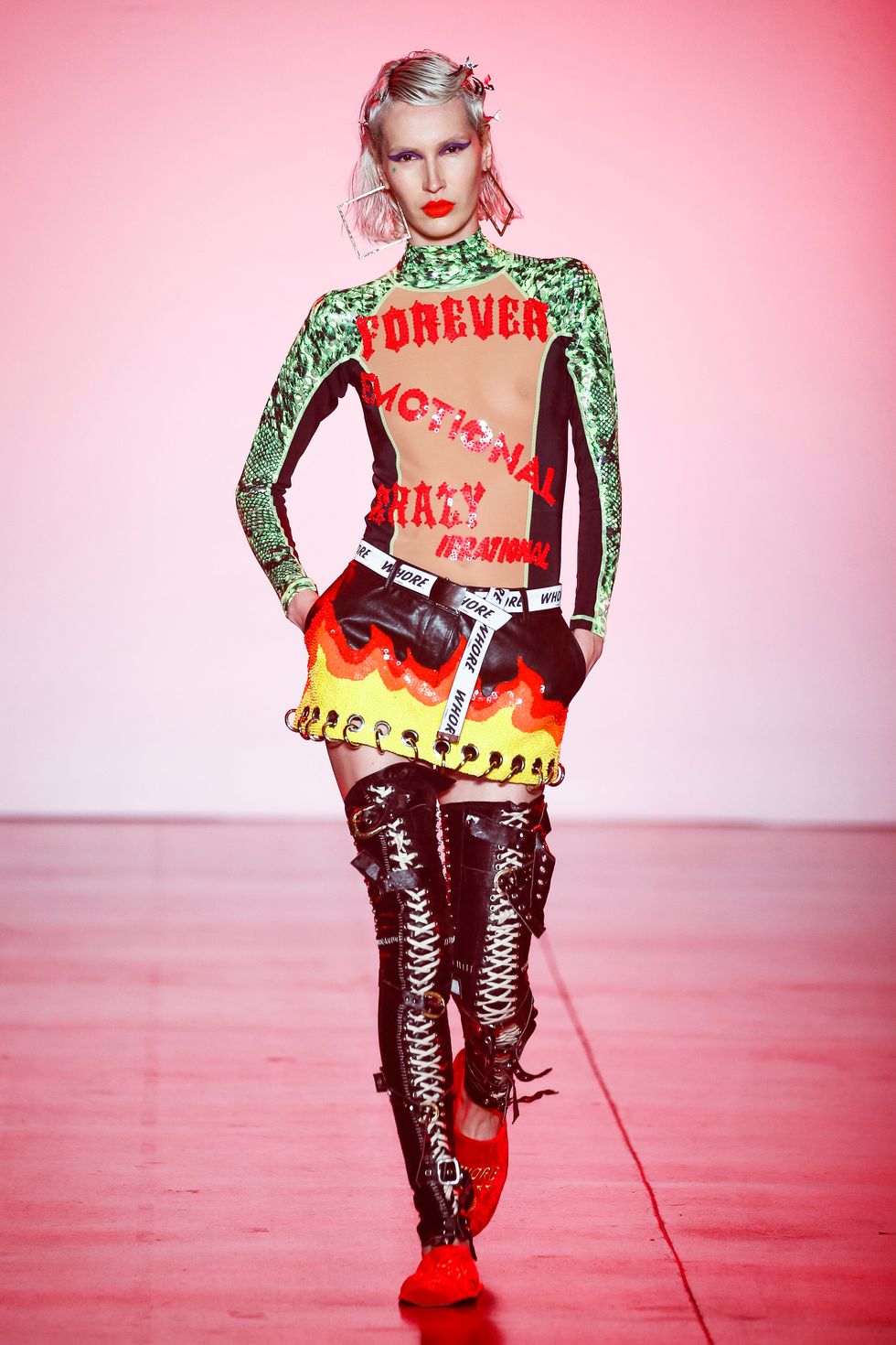 Discount Universe's spring 2019 show featured an exhilarating, racially diverse array of models from across the gender spectrum. Catwalkers included NYC style icon Richie Shazam, Dani Miller (singer for fantastic Brooklyn punk band Surfbort), and model, musician, and "free bitch" Torraine Futurum.