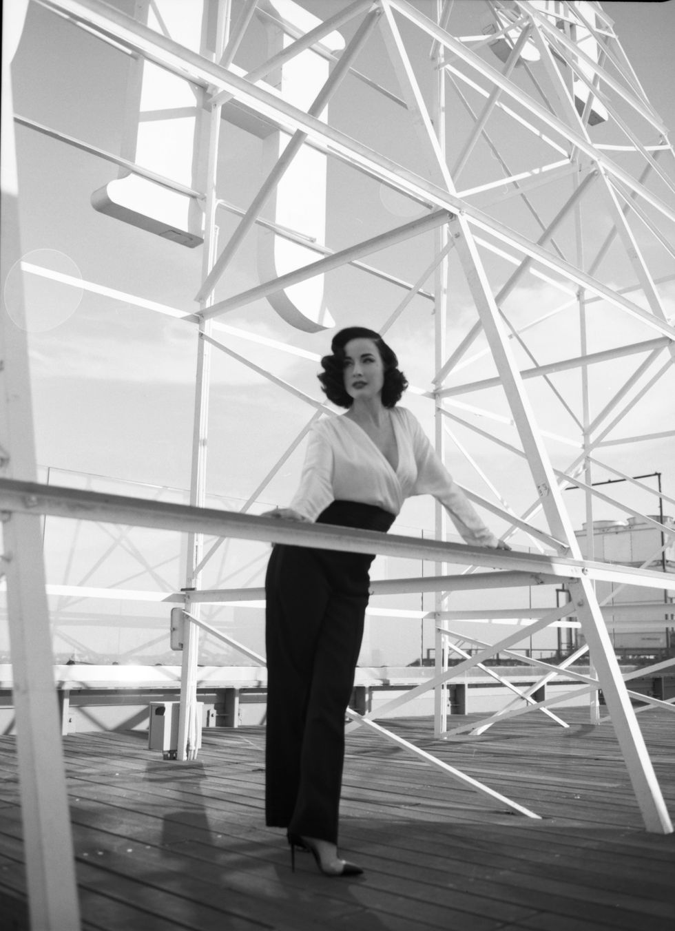 "I'm not a singer," Dita Von Teese nonchalantly admits of her freshly released self-titled project. Perhaps it would be an odd revelation (particularly in an interview about an album release) were it not for the fact the 45-year-old entrepreneur is indeed much better known for her illustrious burlesque career and impeccable fashion sense than she is for having a singer career. In truth, the latter just so happened to fall directly into her lap. "I am not looking to break into music," she told PAPER on no uncertain terms. "I'm not even used to talking about my music and my voice. Still, I've always had this fantasy about recording some songs. I remember when I was 18 or 19 and first started posing for vintage style pin-ups, I discovered a compilation record with all of these bombshells on it: Brigitte Bardot, Jane Mansfield and Marilyn Monroe. I loved the idea of doing something like that too. I remember hearing that Marilyn Monroe used to record just one line at a time, that she couldn't really sing either...That kind of gave me the idea that maybe I could do that too."