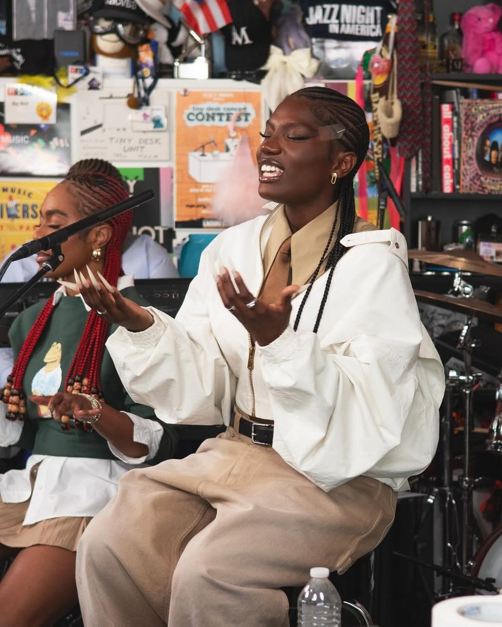 It's very conversational and collaborative, and it depends specifically on the project. For Colbert, I sent her pictures of various skirts, and she said the Gucci one really spoke to her. That was kind of an inspiration, and it brought a lot of things together. For Tiny Desk, a more intimate performance, we wanted to feel this '90s street element, but preppy in the same way, and making those two worlds meet and collide. She was wearing a tie, but it was still cool.