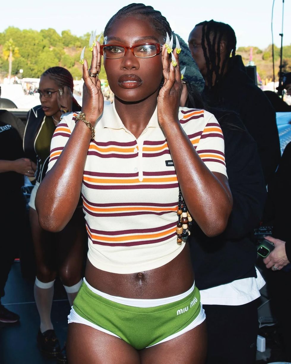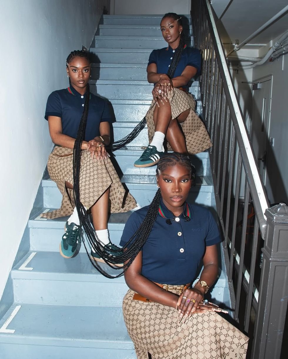 It's the whole package. Everything creates a story, and everything is connected. When you're working with Doechii, she challenges you in the best way possible, and that's why I love working with her. You think, Where is this girl going? What is this girl doing? Where is she from? How did she grow up? What is she trying to tell these people? Everything has a story behind it: Those Gucci girls with the Adidas sneakers showed these rich, preppy school girls but cool, and their dad is the CEO of Motown Records. There's a history behind each look, and it's what we're trying to give and what we're trying to show. She will embody that character 100%.