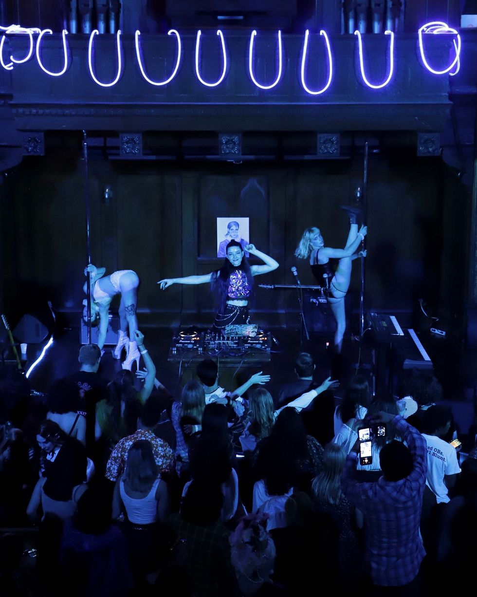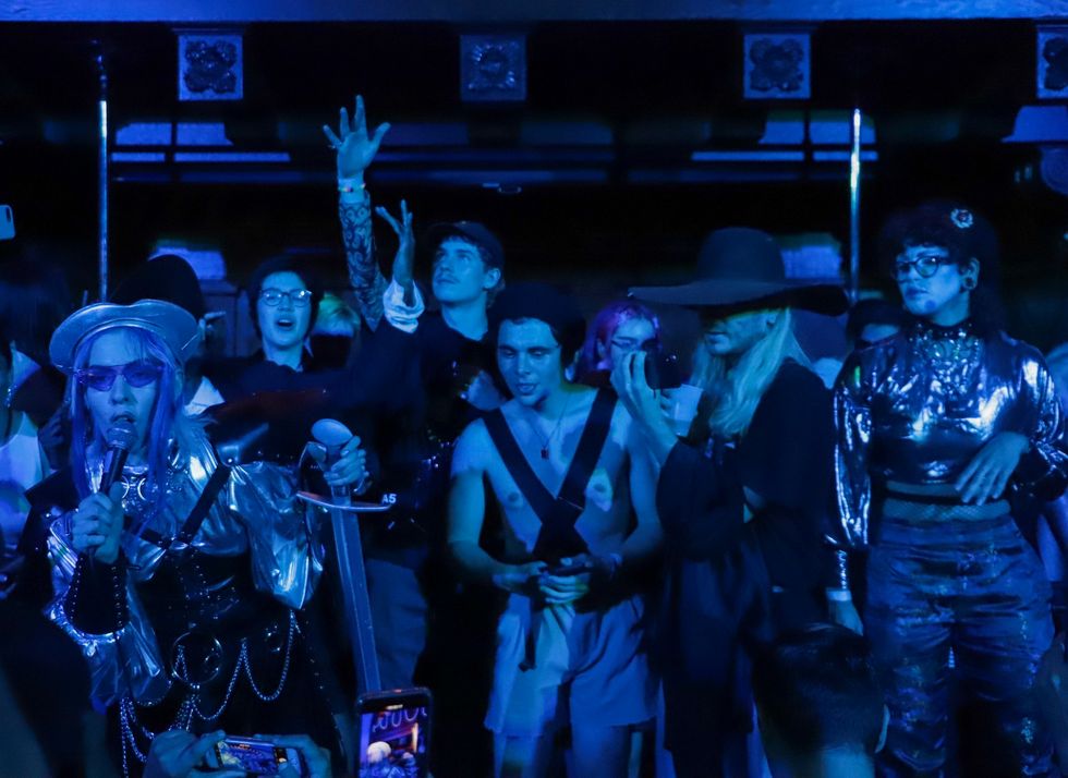 The album release was celebrated in at the Pico Union Project arts center in Los Angeles, and the room was packed. Dorian wore a stunning outfit by The House of Mann, with a space pirate-meets-samurai-meets-knight-meets-BDSM look, and owned the night with their electric performances. But aside from the artist, other acts were featured at the party. There were legendary DJ sets by Dylan Brady, Wyatt Shears, Cowgirl Clue, Hana, and Clarence Clarity.
