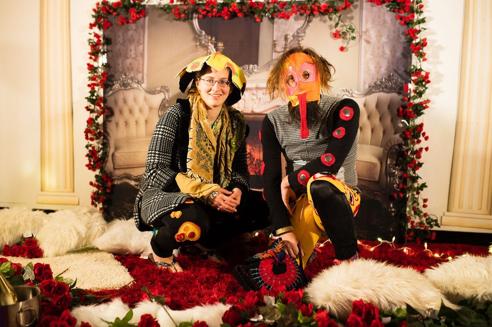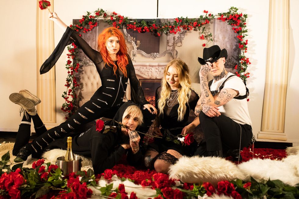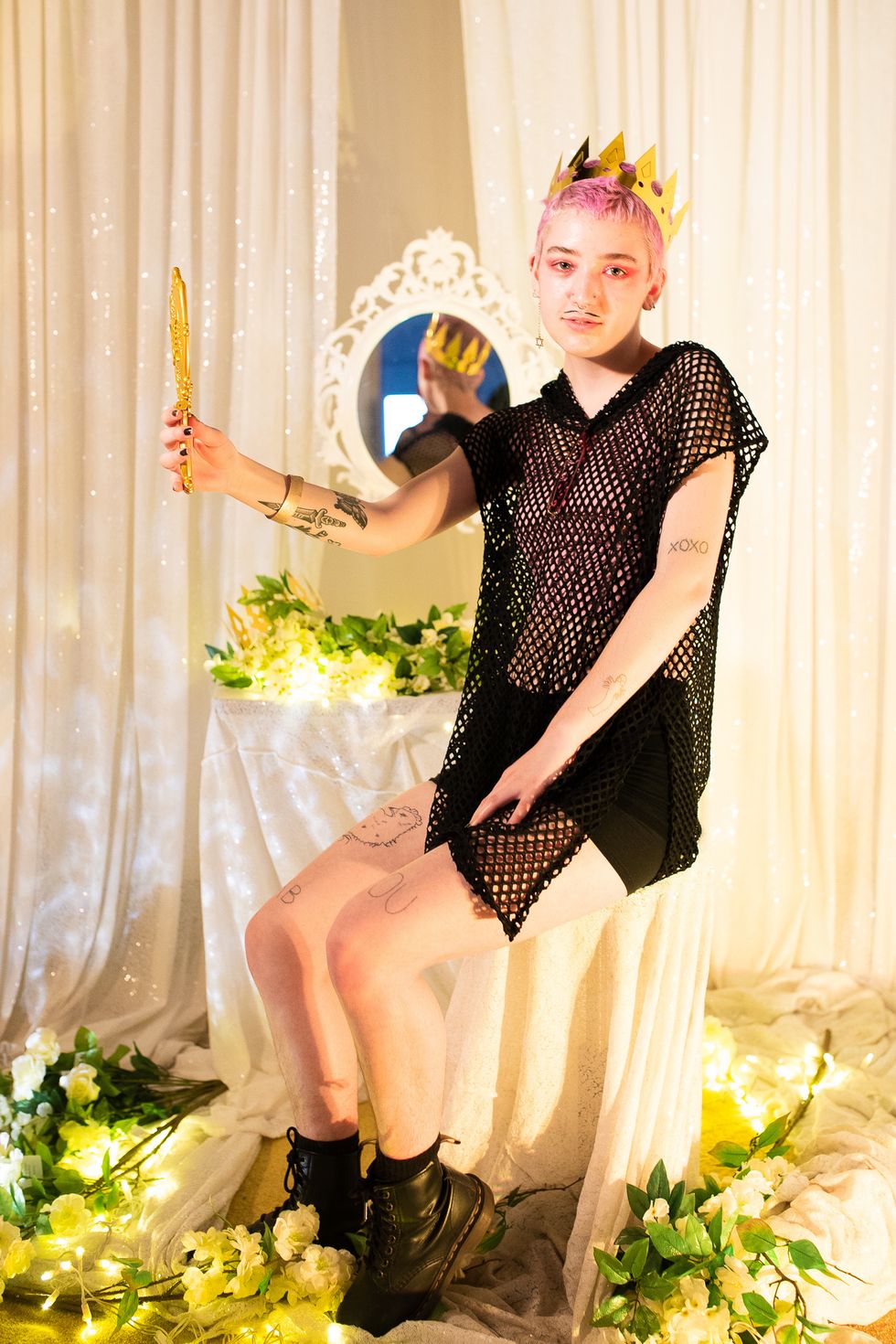 The space was designed to resemble the different rooms in Electra's "Flamboyant" music video, inviting their guests to recreate the over-the-top moments for themselves. One was covered in dramatic red roses, champagne and a faux fireplace, and another had shimmering cream curtains, gold crowns and decadent candelabras.
